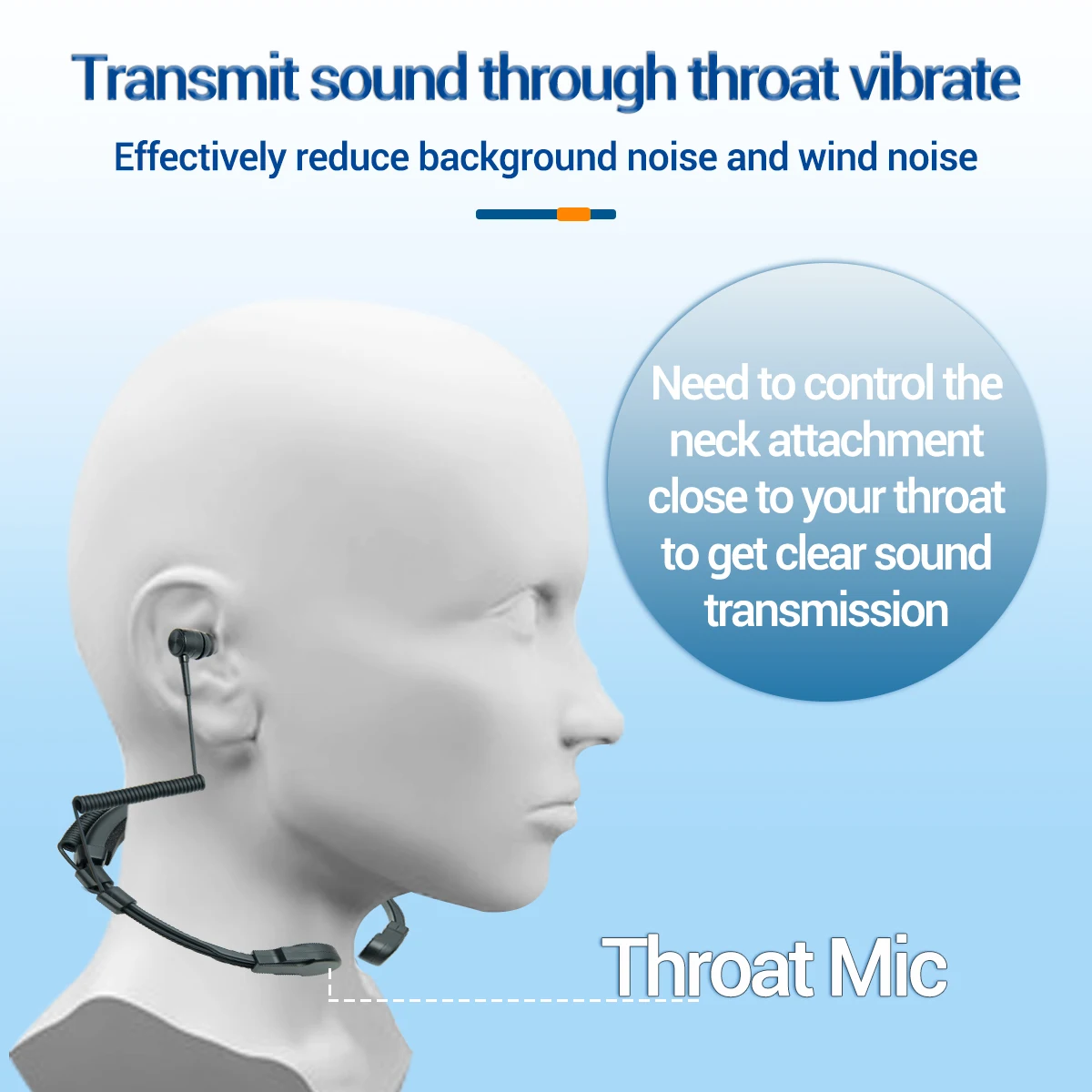 【Micrófono de garganta ajustable: cumpla con su tamaño】 Puede ajustarlo para que se ajuste al tamaño de su cuello para evitar un uso incómodo; ajuste el micrófono más cerca del área de la garganta para obtener llamadas más claras cuando esté en uso.