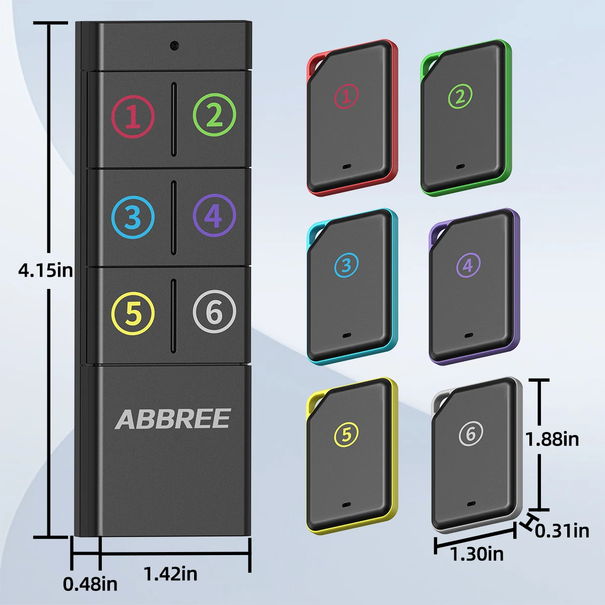 👍Seguimiento independiente 1 EN 6: 6 receptores corresponden a botones dedicados en el transmisor, lo que permite un control preciso de objetivos individuales durante el seguimiento.Por ejemplo, al buscar llaves solas, el sonido de aviso de la billetera no se activará, evitando interferencias causadas por la respuesta de múltiples dispositivos simultáneamente.