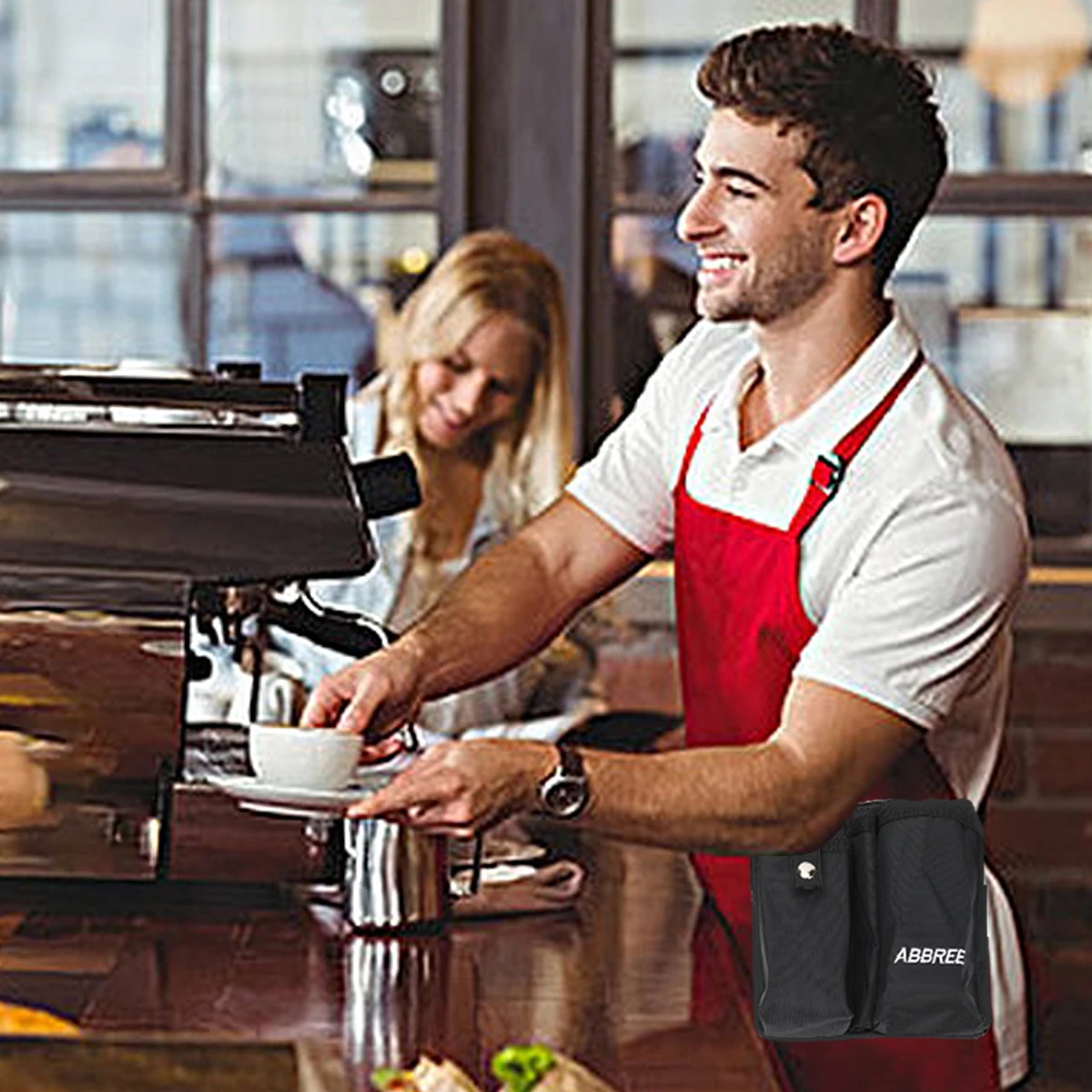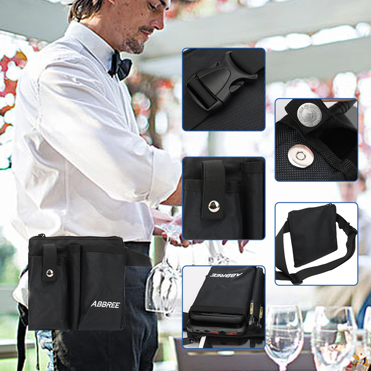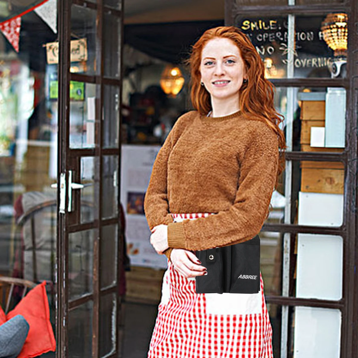 4. La riñonera de lona para camarero puede contener walkie talkie, mini iPad, lápiz, clip de cajero, teléfono móvil, dinero en efectivo, boleto, mini linterna, etc.