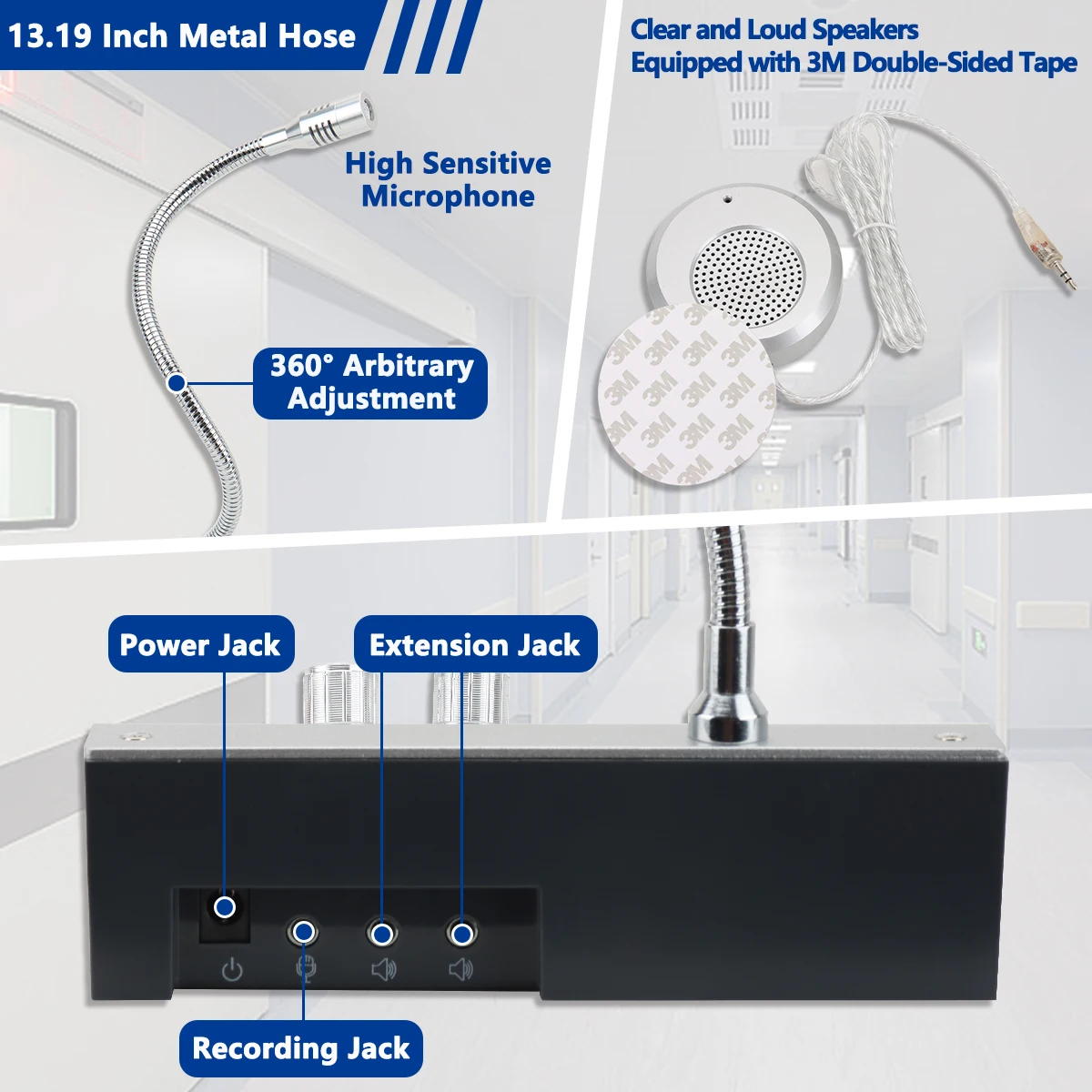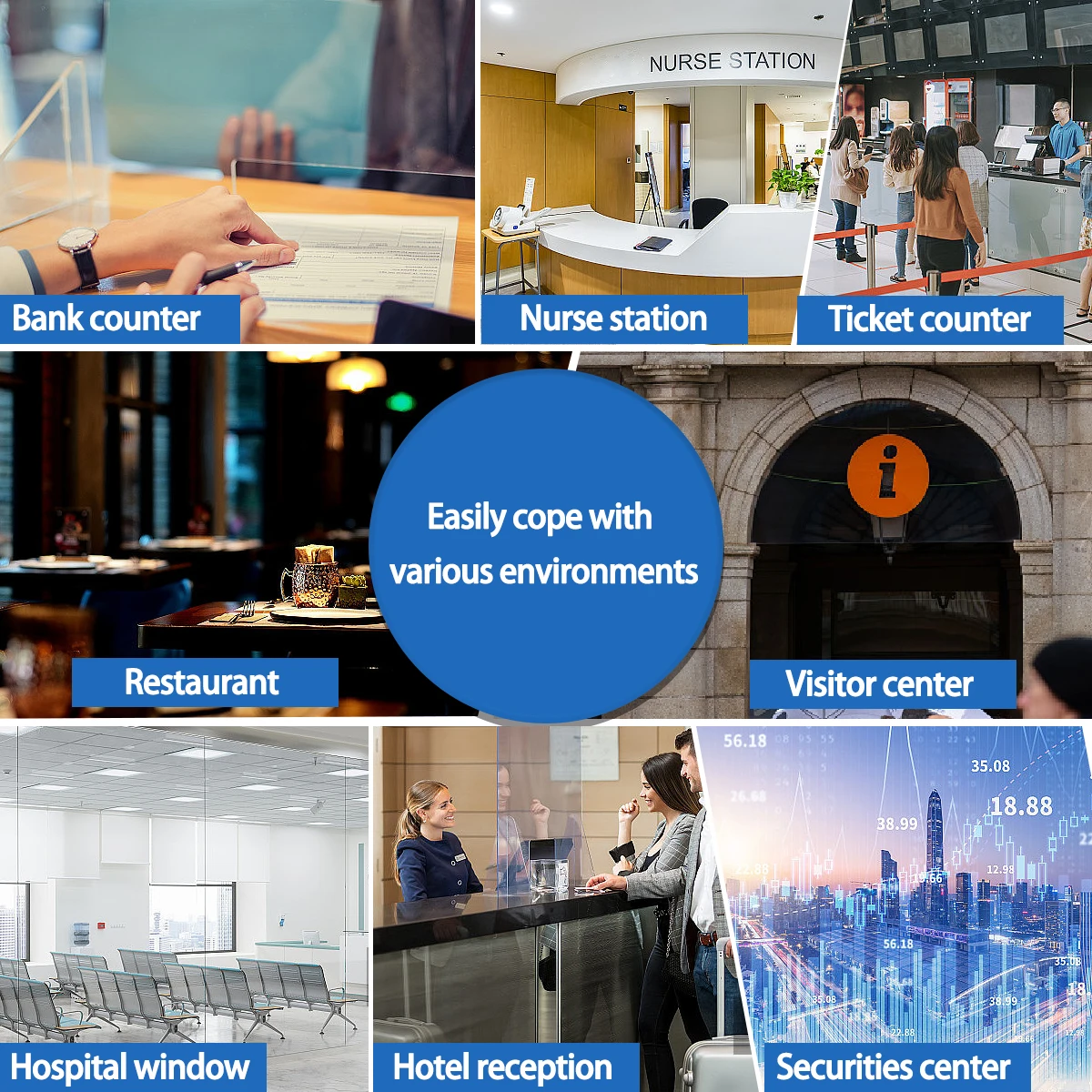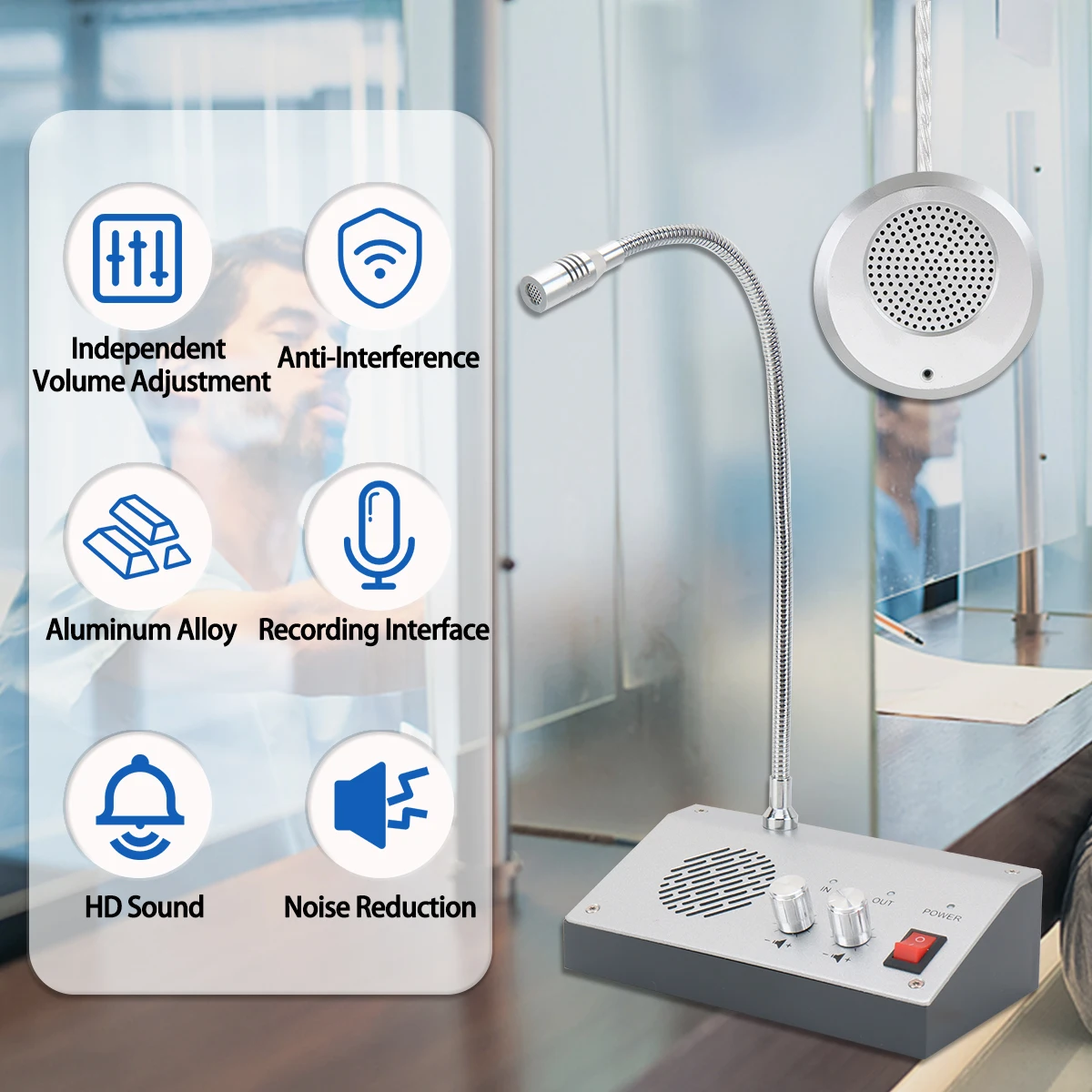 【Amplia gama de escenarios de aplicación】El intercomunicador de ventana es adecuado para ventanas bancarias, ventanas de hospitales, ventanas de oficinas de correos, ventanas de valores, empresas de valores y otros lugares, satisfaciendo las necesidades de diversos escenarios de uso.