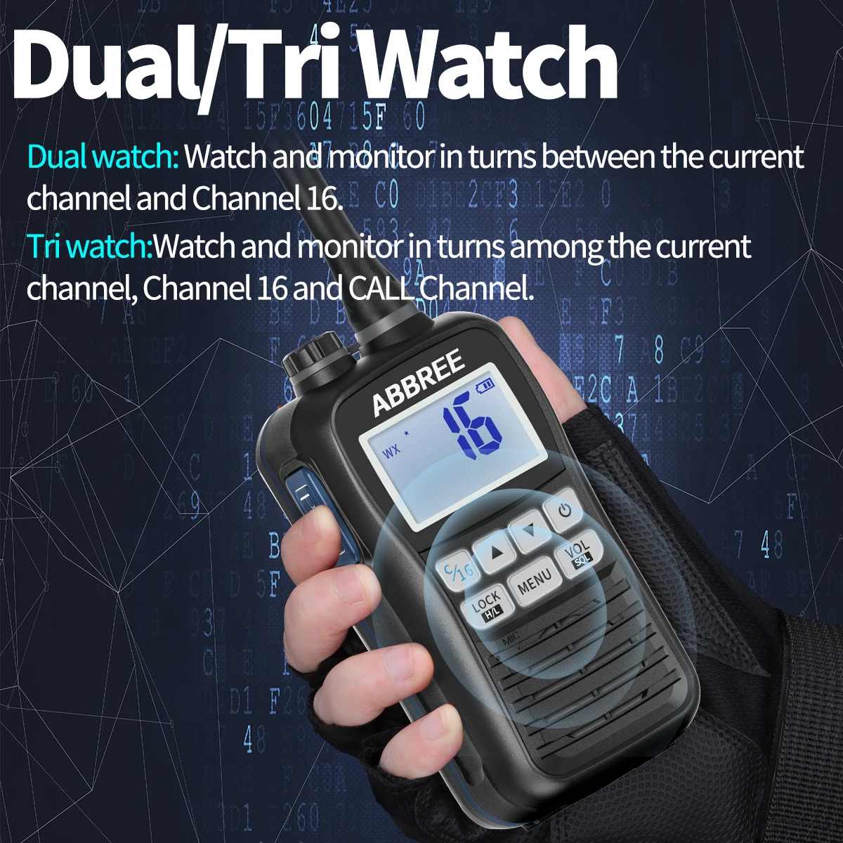 【Dual/Tri Watch】Supervise la recepción de múltiples canales juntos automáticamente. Dual Watch o Tri Watch es una función generalmente utilizada para monitorear simultáneamente el canal 16 más otros canales de su elección. Está disponible para hablar con sus amigos mientras recibe los anuncios del Canal 16, como transmisiones de información marítima urgente o advertencias de tormenta.