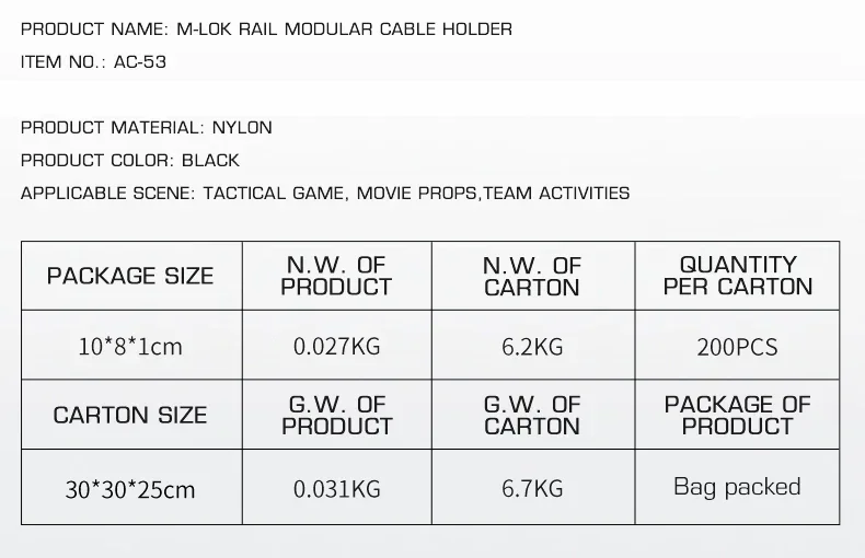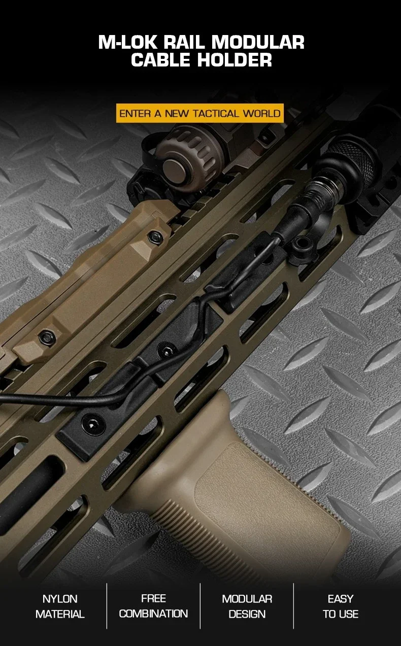 Abrazadera de Cable M-LOk deportiva para caza táctica, 5 uds., pista de nailon, interruptor de linterna fija Modular, abrazadera de Cable