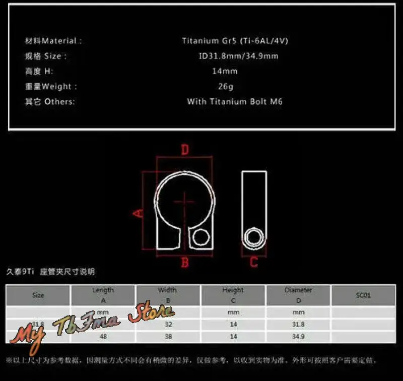 Tija de sillín de bicicleta de titanio, soporte de 31,8/34,9mm, abrazadera Allen, Clip para tija de sillín