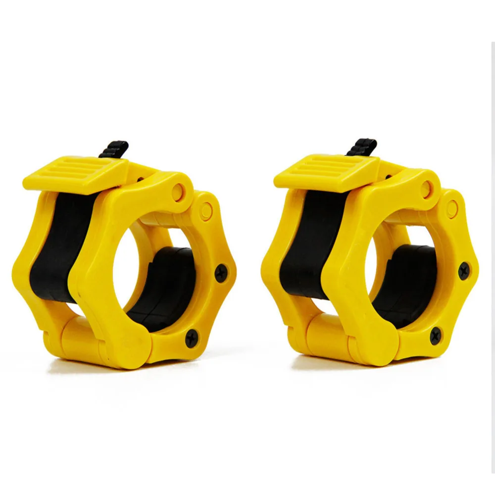 1 par de abrazaderas de cuello de levantamiento de pesas de gimnasio de 2 "collares de barra olímpica Bloqueo de mancuernas Spinlock Barra de pesas de Fitness soporte amarillo