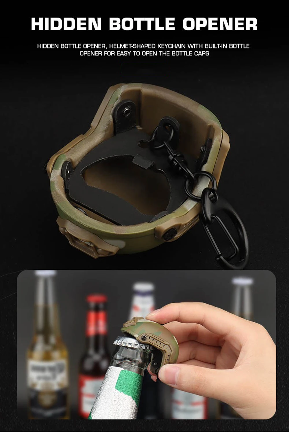 Abridor de botellas de casco rápido, llavero de cerveza, llavero de Camping, llavero de Cola multifuncional, abridor de barra, casco de camuflaje decorativo