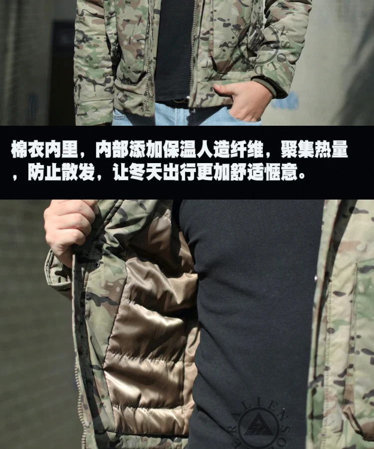Abrigo de algodón de camuflaje para todo terreno para hombres, chaqueta de camuflaje cálida gruesa, ropa táctica para fanáticos del ejército al aire libre