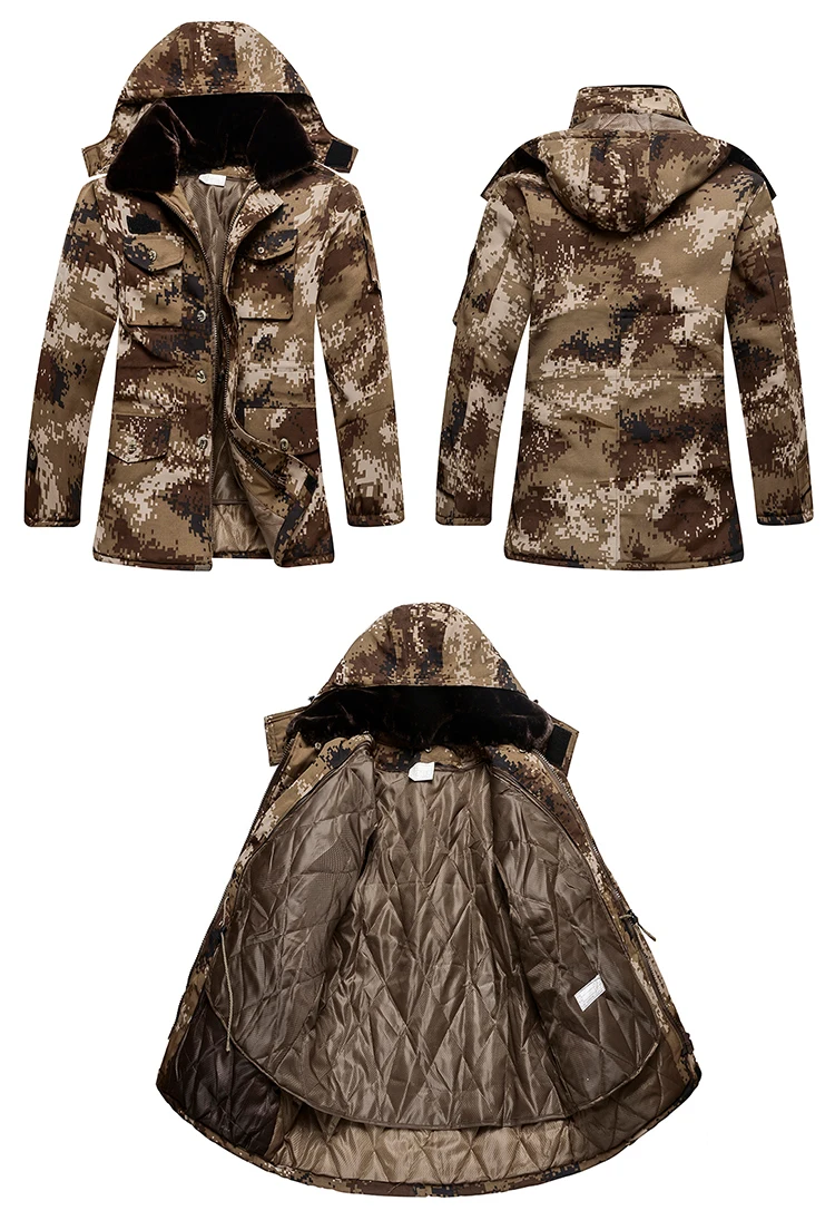 Abrigo de camuflaje de algodón grueso para hombre, chaqueta impermeable térmica de gran tamaño con forro desmontable