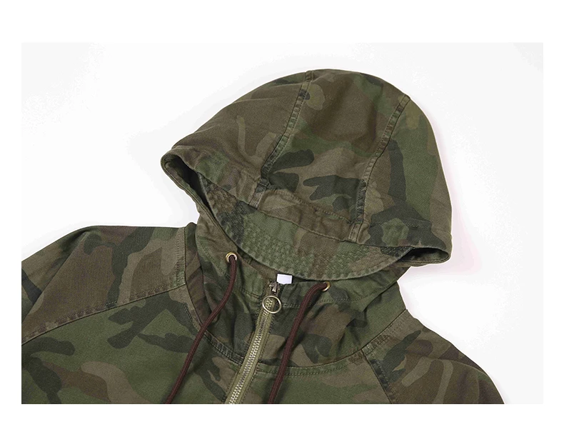 Abrigo de camuflaje con capucha, chaqueta informal holgada con media cremallera, ropa de trabajo, moda Retro, funcional, Otoño e Invierno