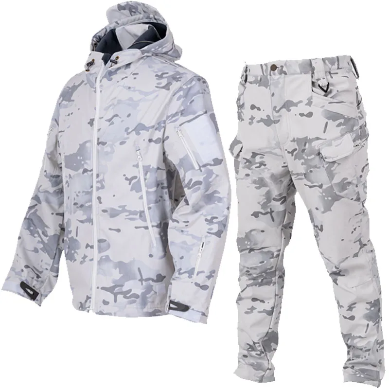 Abrigo de camuflaje de nieve blanco, pantalones, traje, chaqueta táctica, cremallera acolchada en las axilas
