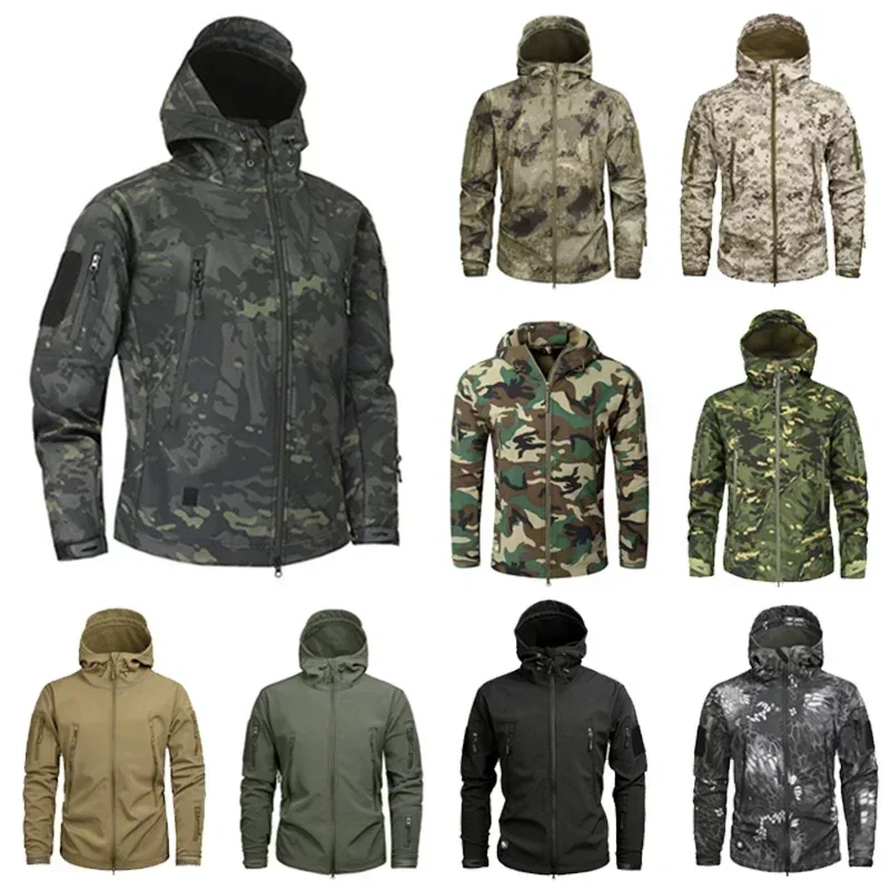 Abrigo con capucha impermeable táctico SoftShell para hombre, pantalones de combate, pesca, senderismo, Camping, escalada, esquí, invierno