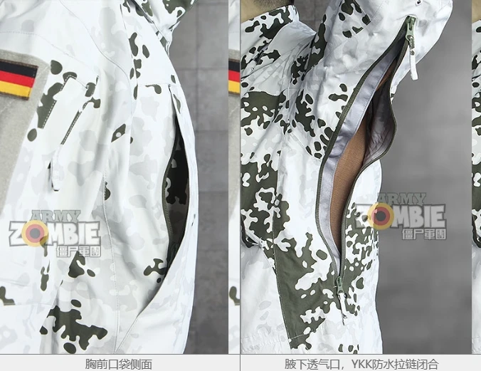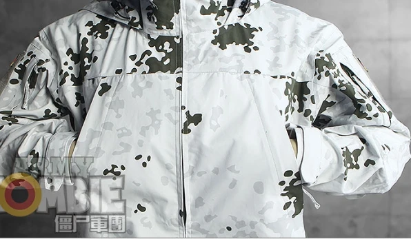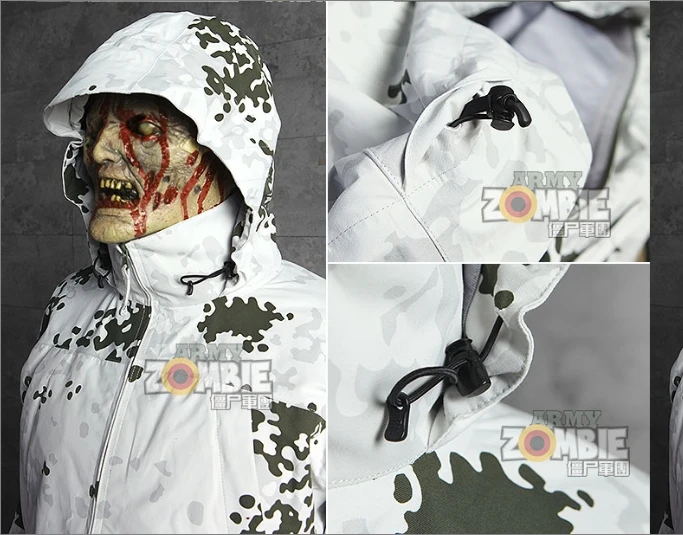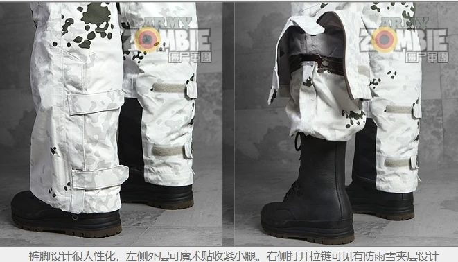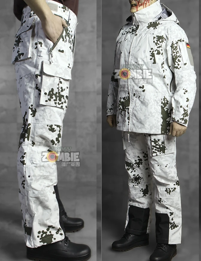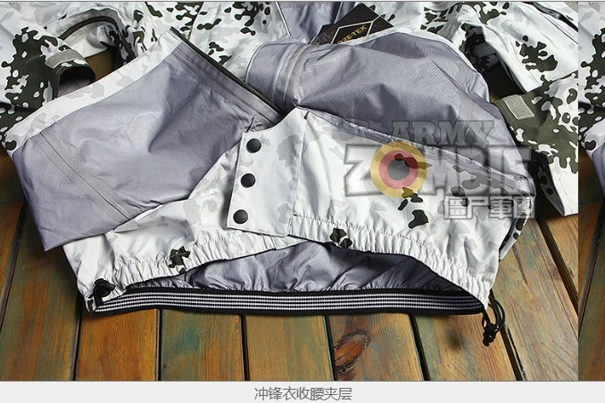 Abrigo impermeable de camuflaje manchado de nieve, pantalones cortavientos tácticos, traje de esquí