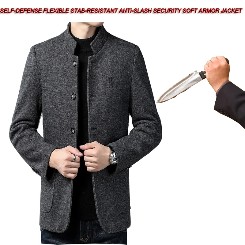 Estilo chino cuello alto polar nailon autodefensa, autodefensa, abrigo de hombre anti puñalada y anti Chop, engrosado, mantenimiento cálido, flexible, invisible, ropa protectora de seguridad anti hacker