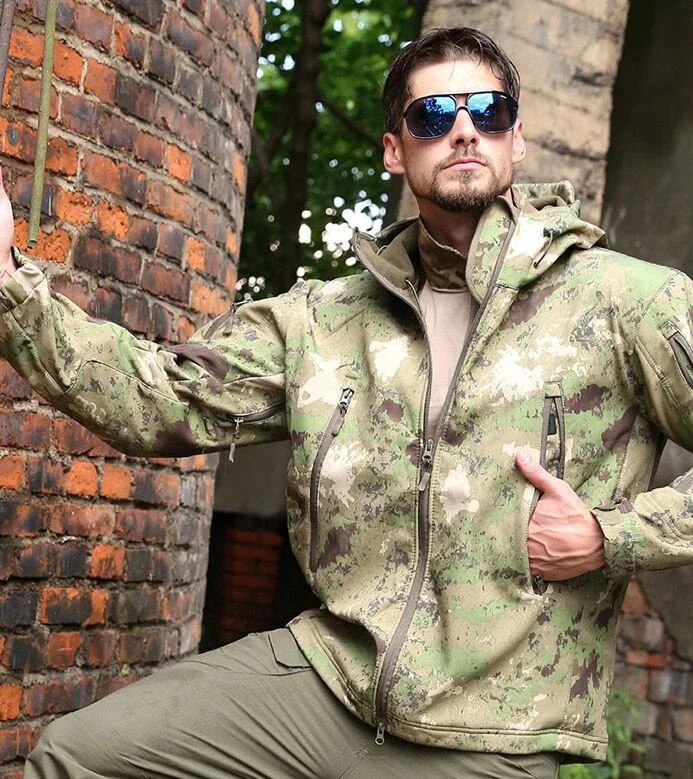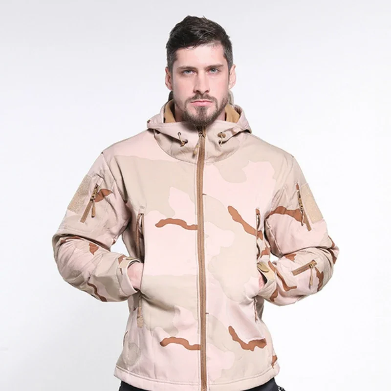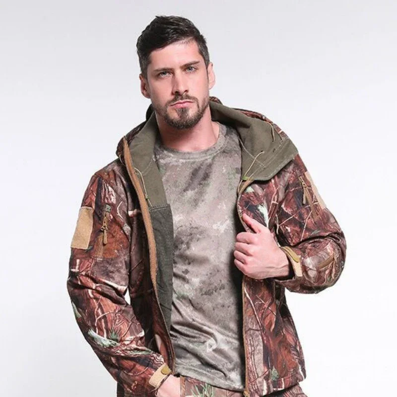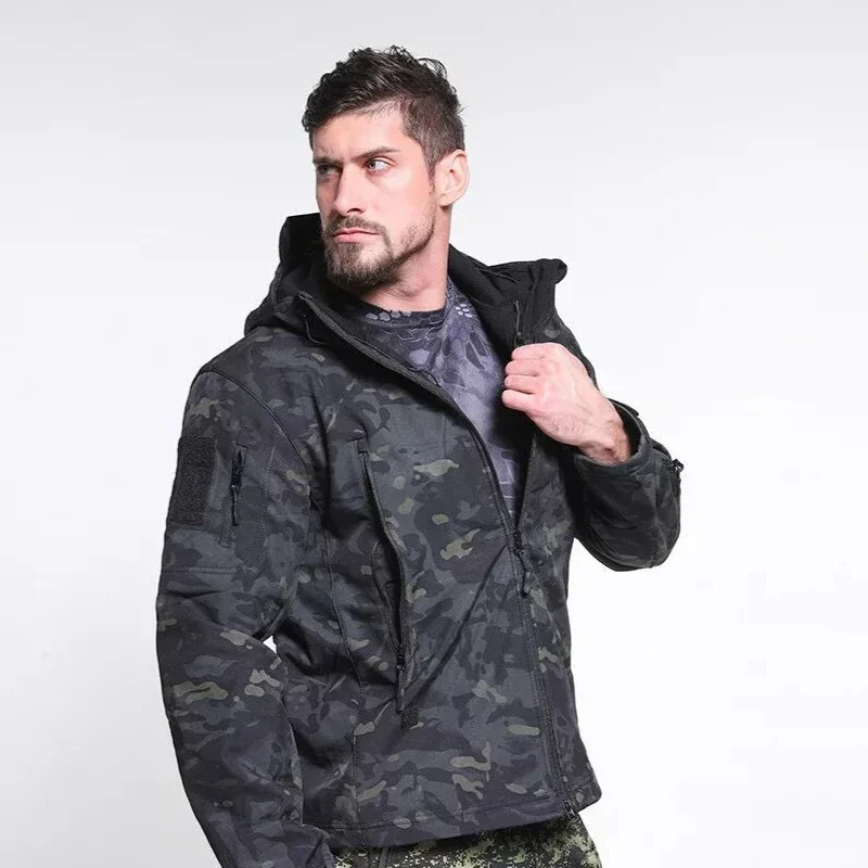 Abrigos impermeables a prueba de viento de camuflaje para hombre, Tops para hombre, senderismo al aire libre, forro polar de concha suave, chaquetas tácticas gruesas y cálidas, talla S-5XL