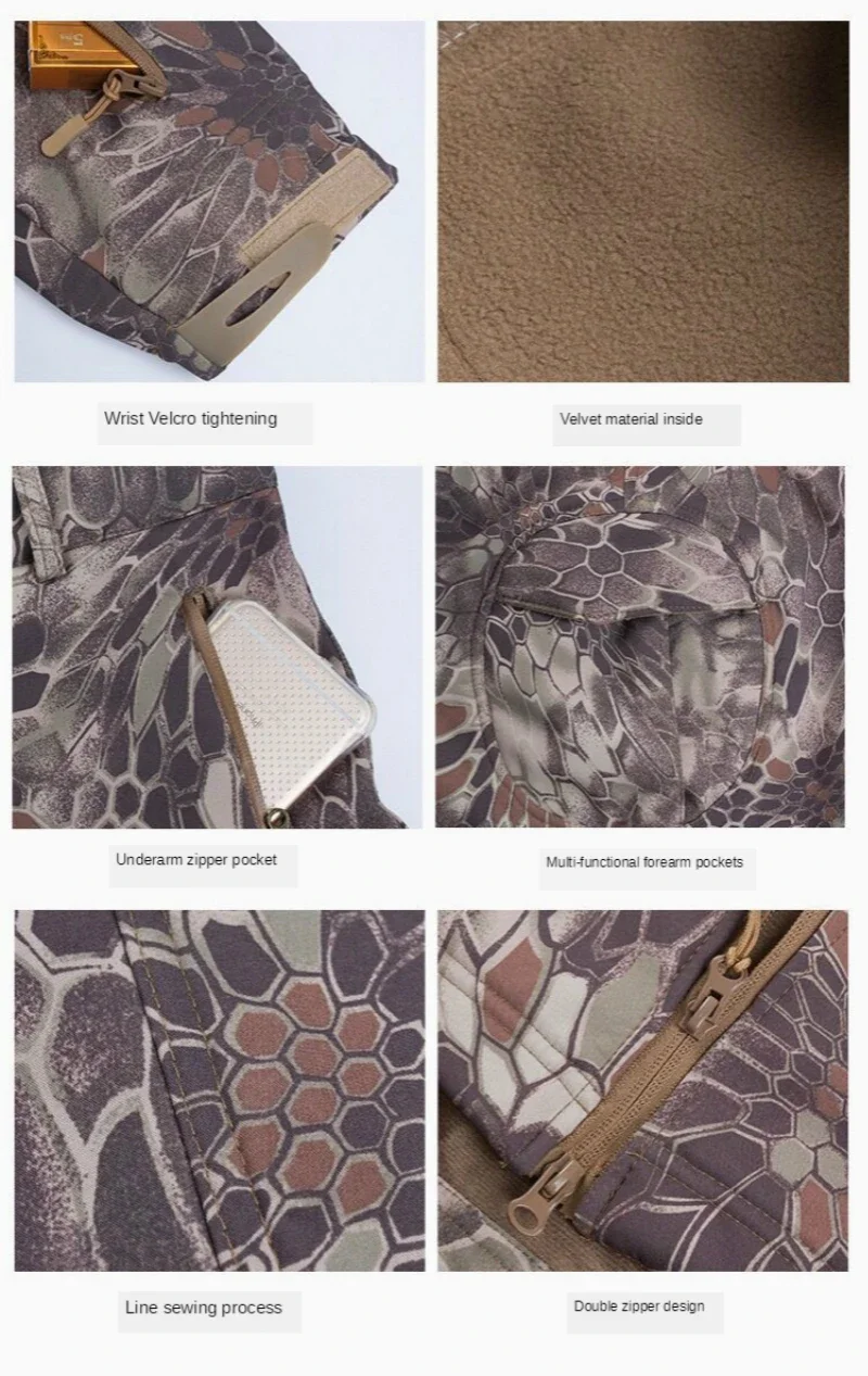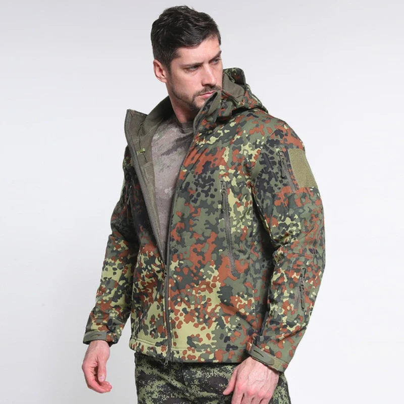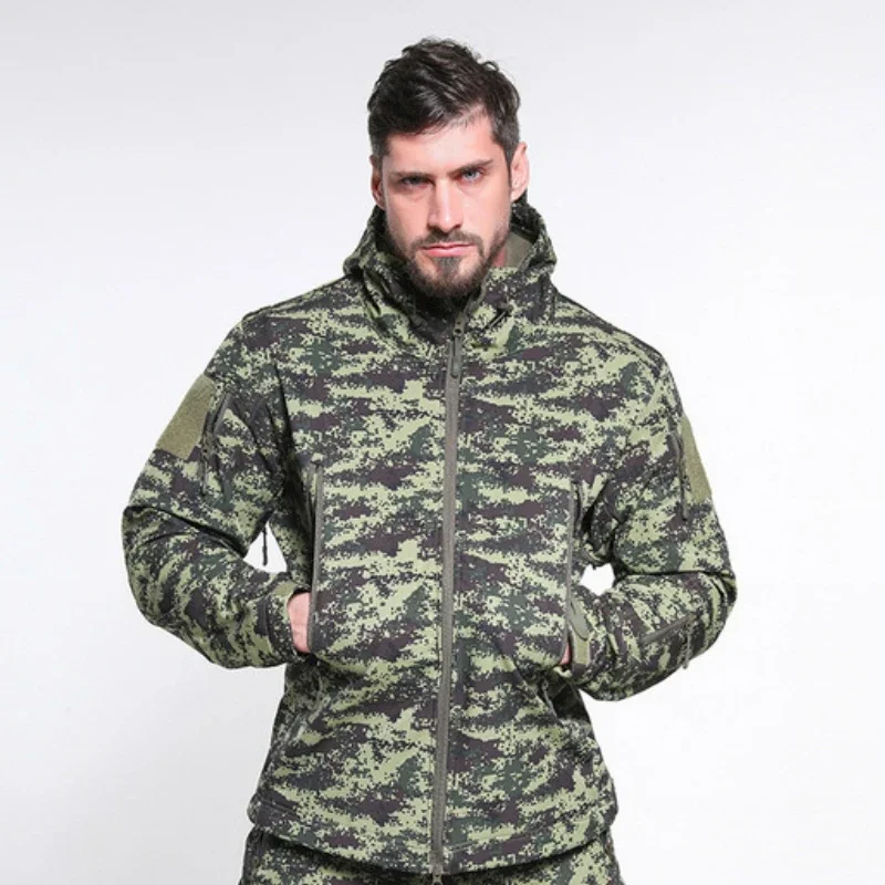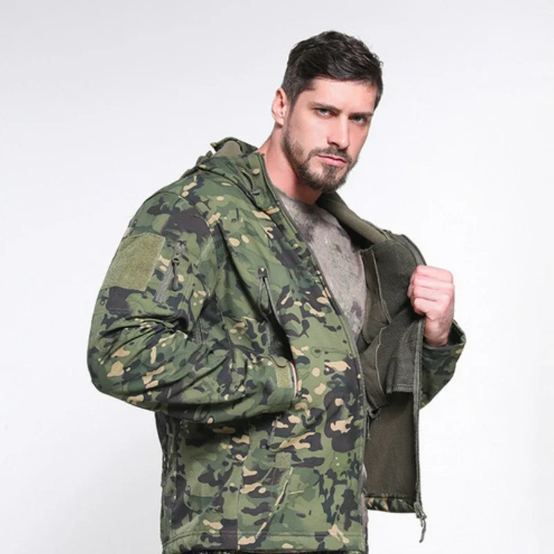Abrigo impermeable de camuflaje a prueba de viento para hombre, Tops para senderismo al aire libre, chaqueta táctica gruesa y cálida de lana de concha suave, talla S-6XL