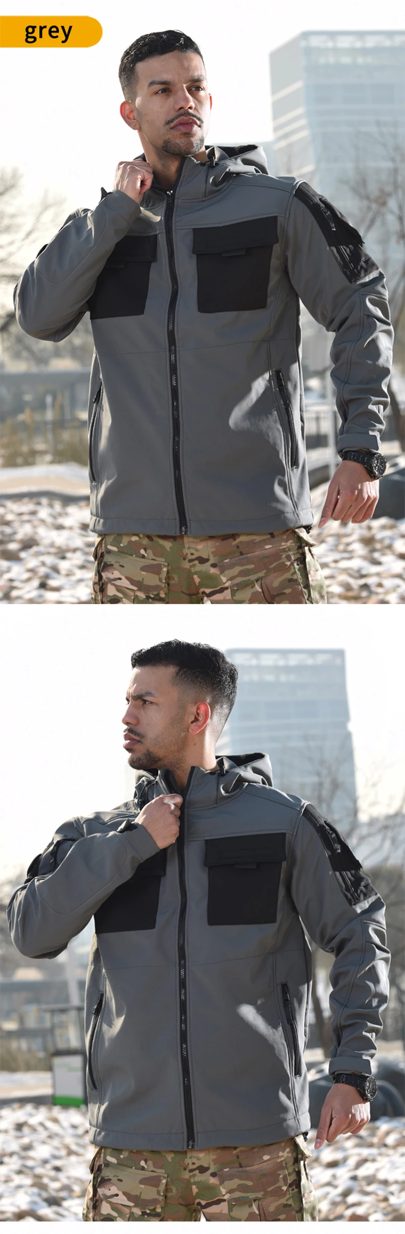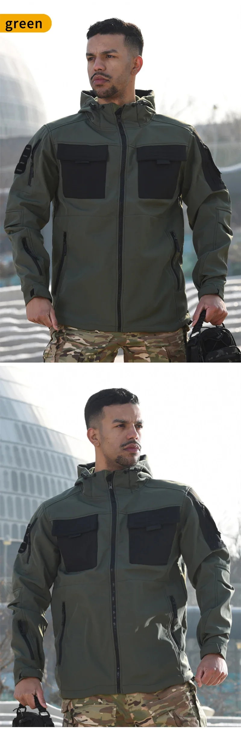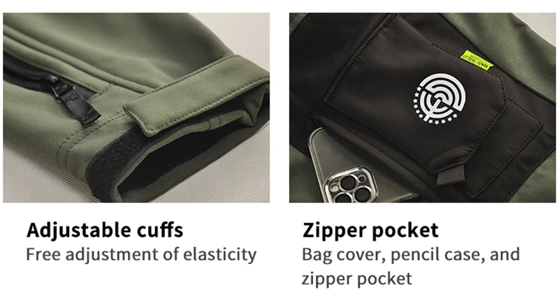 Material:Fibra de poliéster + forro polar Característica: 1.La tela exterior blanda es resistente a los arañazos y al desgaste. 2.Función repelente al agua, fácil de hacer frente a la lluvia ligera al aire libre. 3.El interior está hecho de forro polar, lo que proporciona calidez y almacenamiento de calor, y está mejorado para resistir el frío. 4.Diseño de múltiples bolsillos para una carga mejorada.