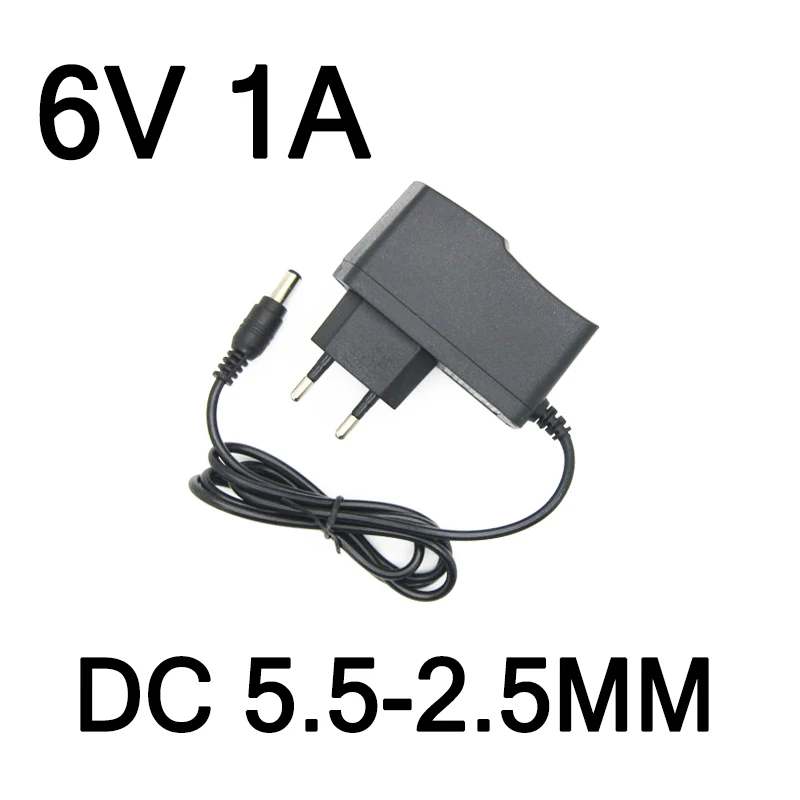 Parámetros de potencia y otras instrucciones.Adaptador de corriente universal, transformador de fuente de alimentación conmutadaLa fuente de alimentación para requisitos de voltaje para el rango de 5,8-6,2 V, la demanda actual de equipos dentro de 1a o 1aAlimentación CC aplicada a las necesidades eléctricas, placa de desarrollo 6v1a, disco duro extraíble, micrófono inalámbrico Bluetooth, etc.El voltaje de la fuente de alimentación es adecuado para todo tipo de necesidades 6v 1A o 1A por debajo de los productos de entrada de CC actuales, ¡no se puede sobrecargar para su uso!Atención selectiva de energía, debe seguir para seleccionar que la corriente eléctrica constante del voltaje es igual o superior a la fuente de alimentación de corriente requerida.Voltaje de entrada (INPUT): 100-240 V 50-60 HzEl voltaje de salida (SALIDA): DC 6V 1APotencia (POTENCIA MÁXIMA DE SALIDA): 6WTotal: longitud de línea 1mEnchufe CC: 5,5*2,5 mm