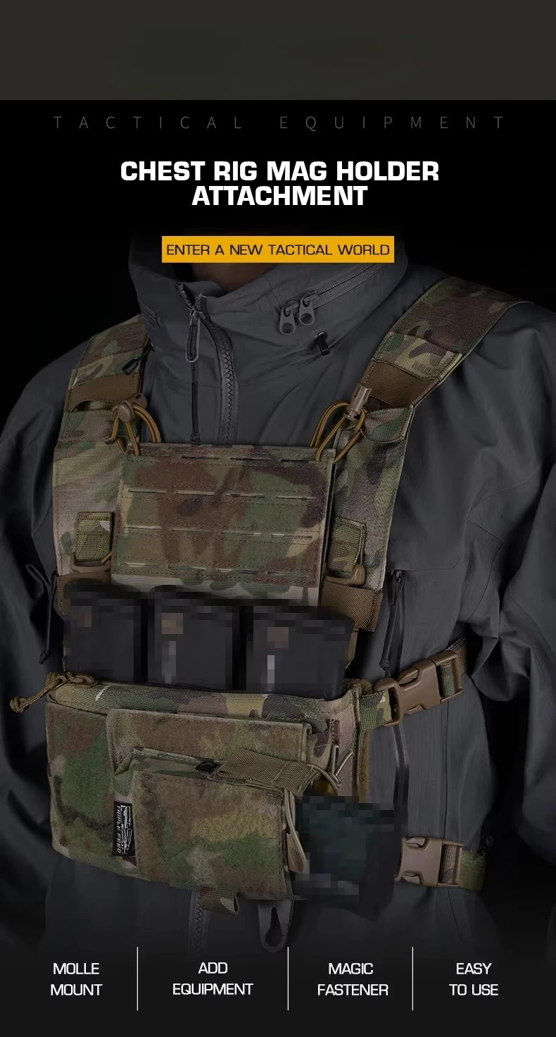 Descripción del productoAccesorio de soporte Mag para aparejo de pecho, montaje MOLLE ampliamente adaptable, accesorio de aparejo de pecho para accesorios de cazaInformación del producto
