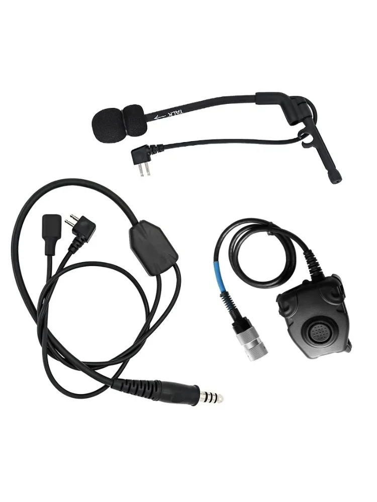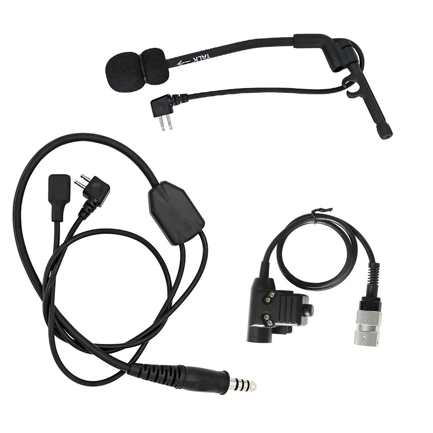 El cable tiene 2 enchufes y un conector.El primer enchufe es un enchufe estándar militar de 7,00 mm, que se puede insertar directamente en el PTT para conectarse al walkie-talkie.El segundo enchufe es el enchufe de 2 pines del micrófono comtac, que se utiliza para enchufar auriculares.De esta forma, puedes conectar los auriculares al micrófono para comunicarte.El tercer conector es el conector de micrófono Comtac, que se utiliza para conectar el micrófono a los auriculares.