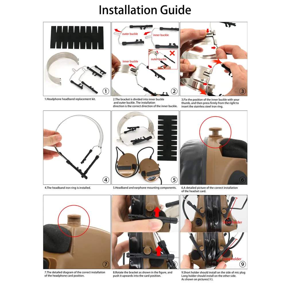 Auriculares de tiro tácticos Airsoft con diadema, soporte de aro, accesorios de repuesto