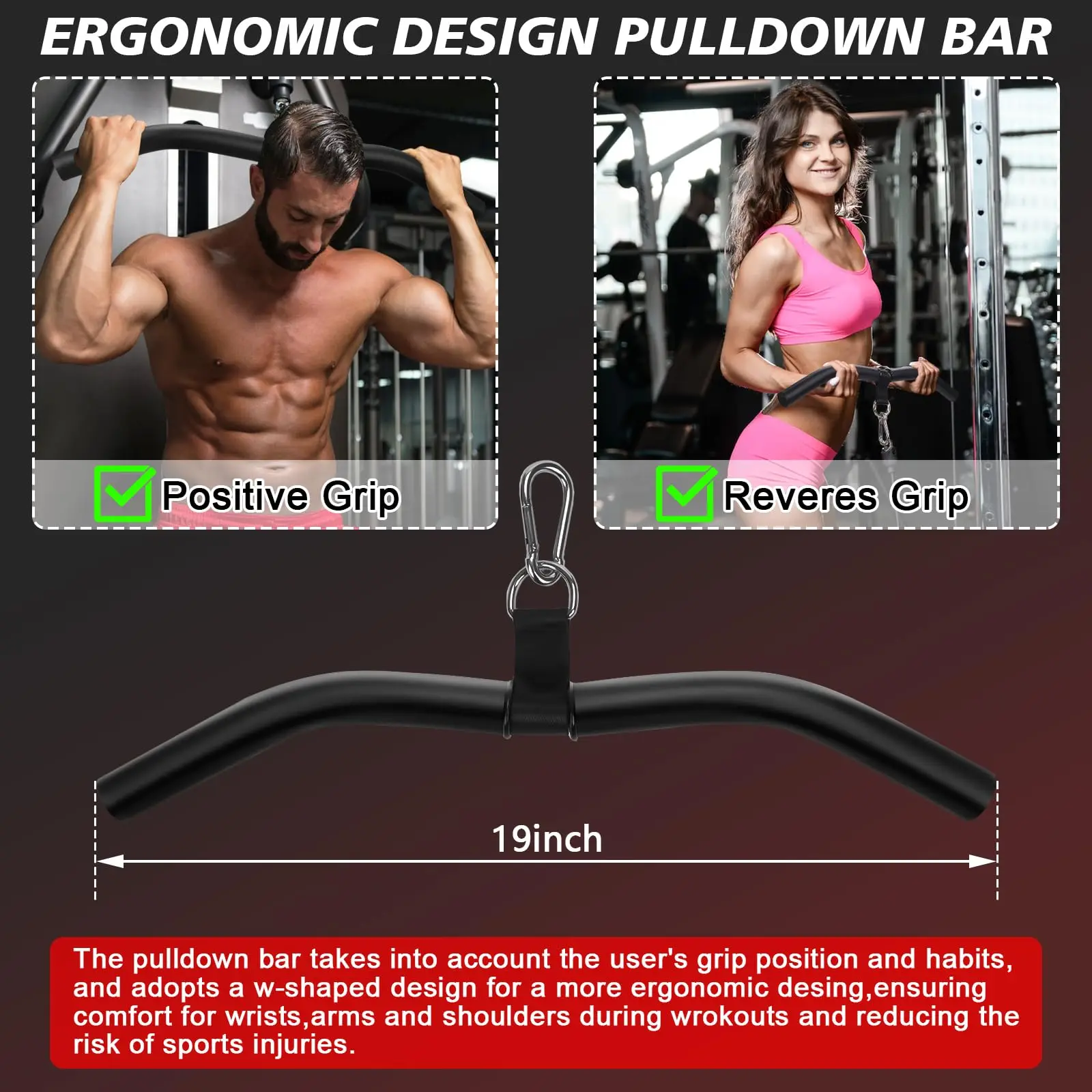 Accesorio de barra extraíble LAT de alta resistencia de 19 "para máquina de cables de gimnasio en casa, mango de presión profesional para rizos y tríceps, agarre de goma