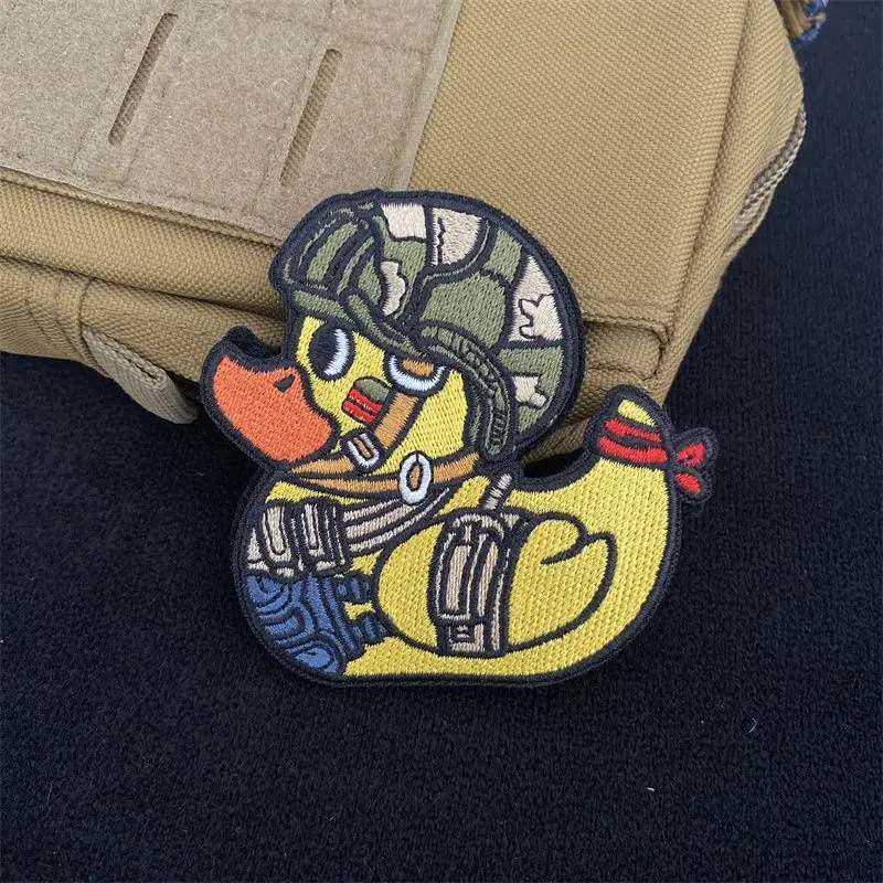 Accesorio para bolsa al aire libre, máquina de escuchar, bordado de pato táctico, brazaletes para entusiastas militares, casco DIY, chaleco, parches de bucle de gancho