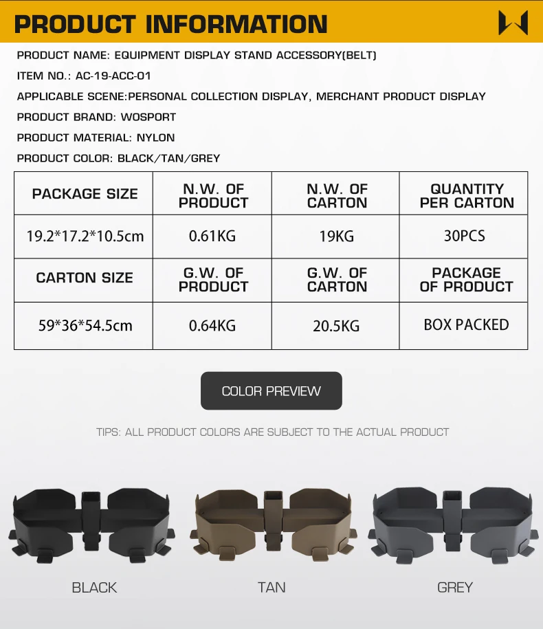 Nombre del producto: Accesorio de soporte de exhibición de equipo (cinturón)