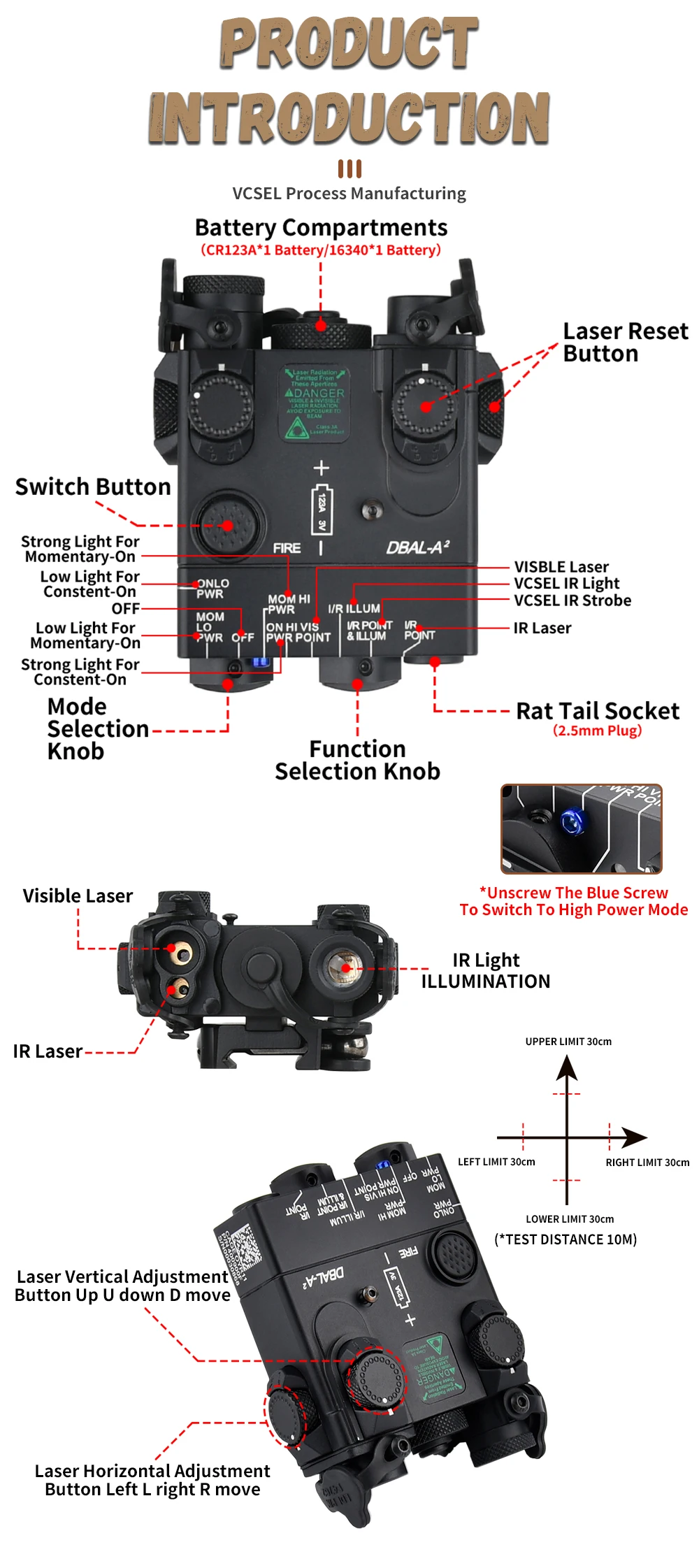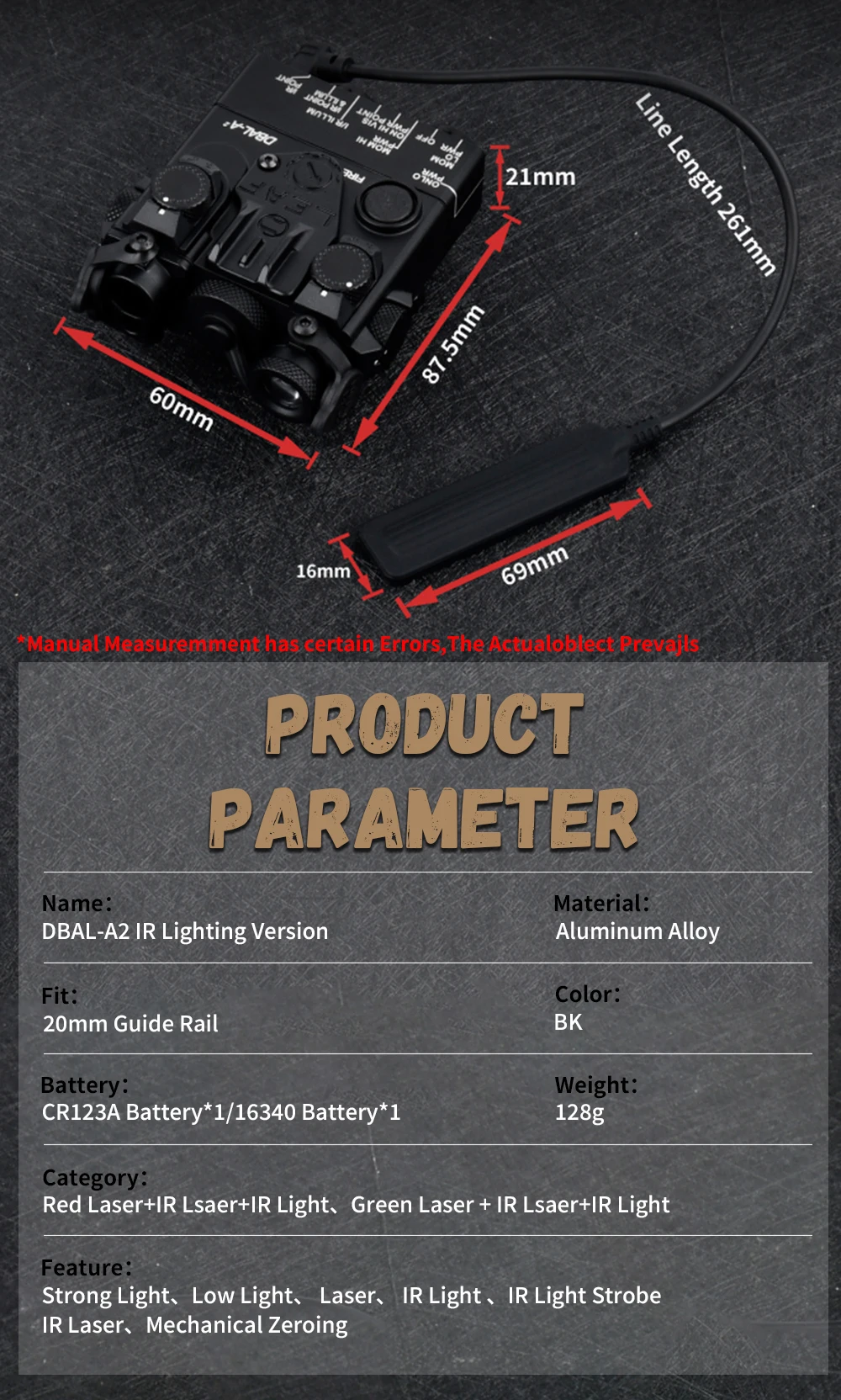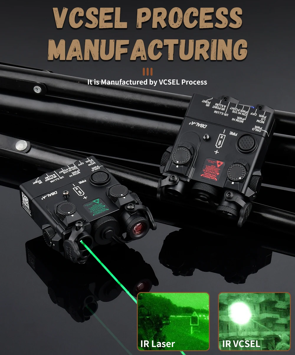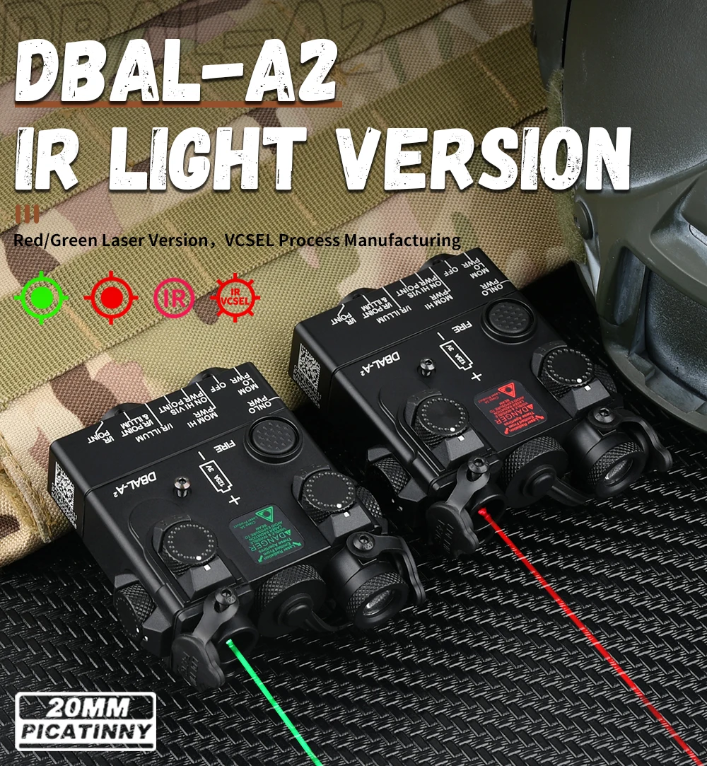 VCSEL táctico totalmente metálico DBAL-A2 iluminación IR versión estroboscópica LED punto rojo verde puntería caza Airsoft arma DBAL IR VCSEL Iaser