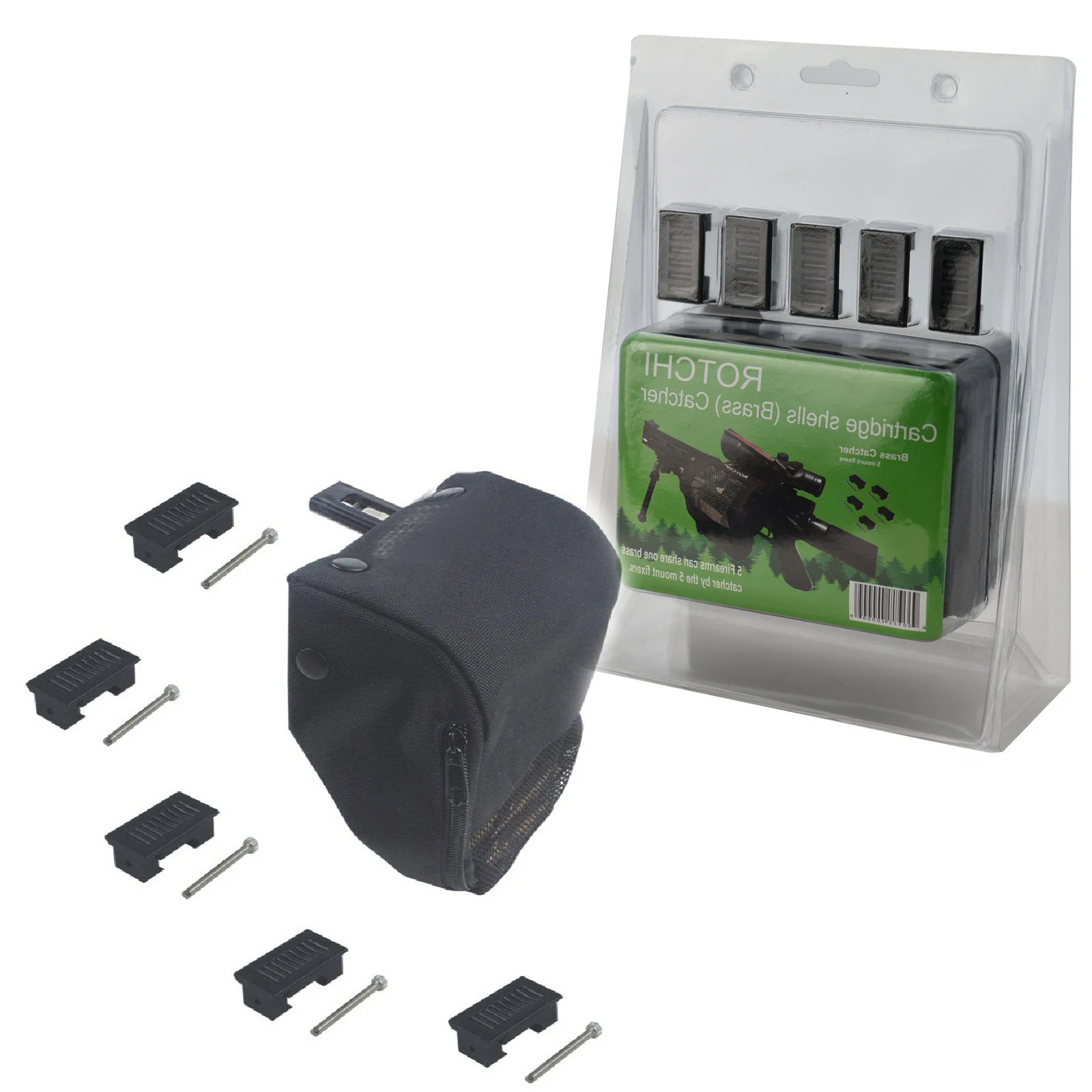 Accesorio táctico receptor de carcasa de tiro con 5 piezas, bolsa de red de reciclaje Picatinny desmontable, Colector de captura de latón