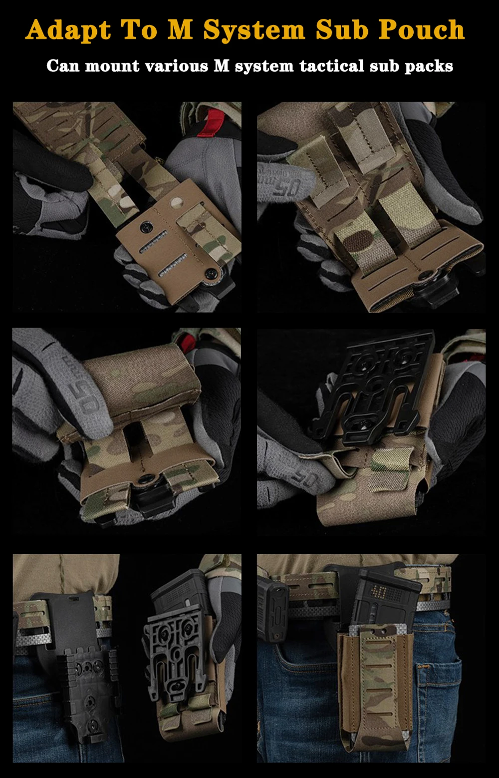 - Montaje del sistema M:Puede montar varios subembalos tácticos del sistema M.