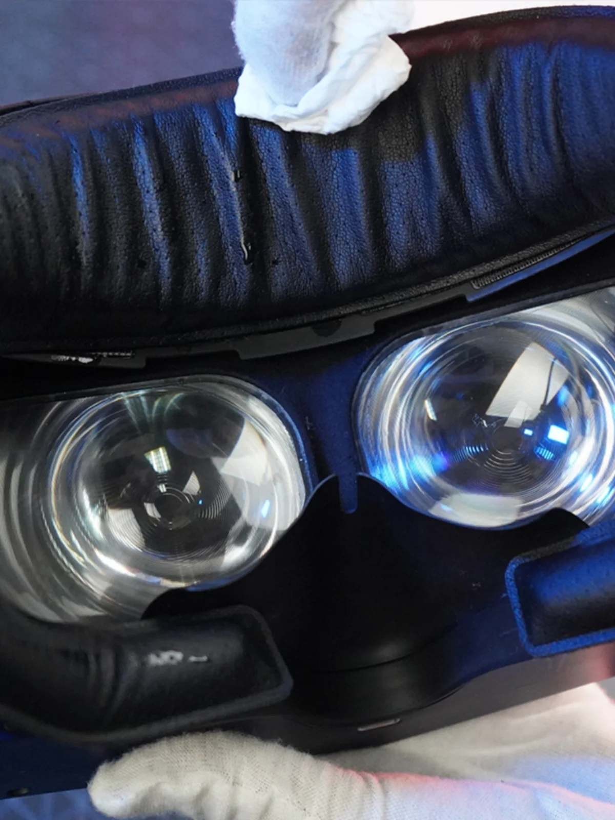 Núcleo interior suave, se adapta a la cara, la superficie está hecha de piel proteica agradable para la piel, no absorbe el sudor, buen cuidado, después de su uso con algodón con alcohol o toallas de papel para limpiar el sudor generado durante el juego puede resolver el problema de la tradicional La máscara para los ojos del casco acumulación de sudor produce olor.