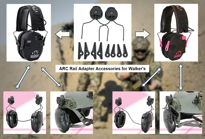 Accesorios para auriculares tácticos, adaptadores de riel de arco para Walker's Razor, orejeras electrónicas, protección auditiva, auriculares de tiro Airsoft