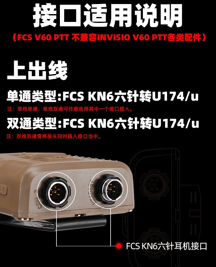 Accesorios para auriculares tácticos AMP y radios PRC148 152 NUEVOS FCS TACTICAL V60 PTT Múltiples funciones Dos canales de comunicación