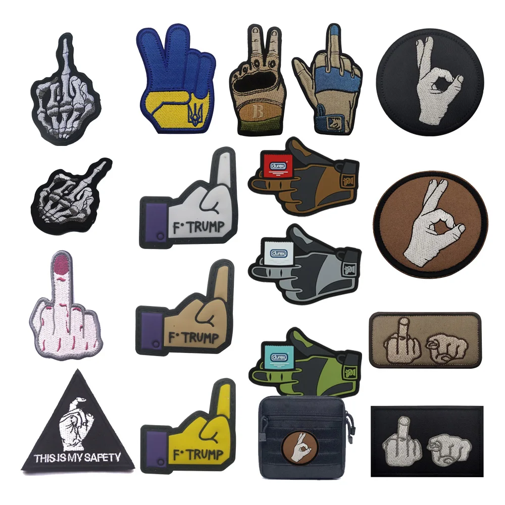 Accesorios para bolsa al aire libre, insignia, manga para el dedo, parche de tela bordado, calavera, dedo medio, moral mágica, parche para mochila táctica