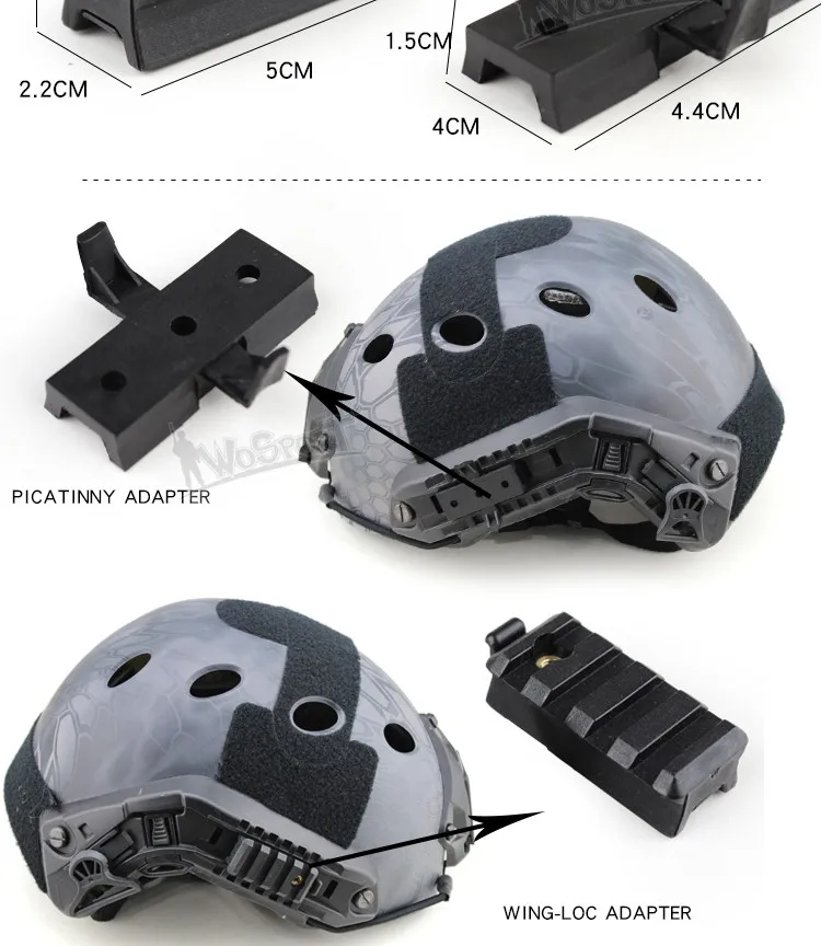 Accesorios para casco rápido Airsoft: adaptador de dispositivo multifuncional, adaptador Picatinny y adaptador Wing-Loc, cuerda de nailon para rieles guía