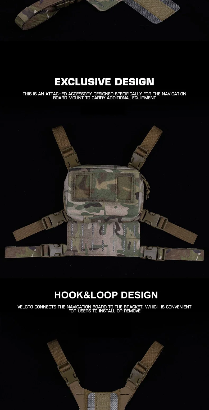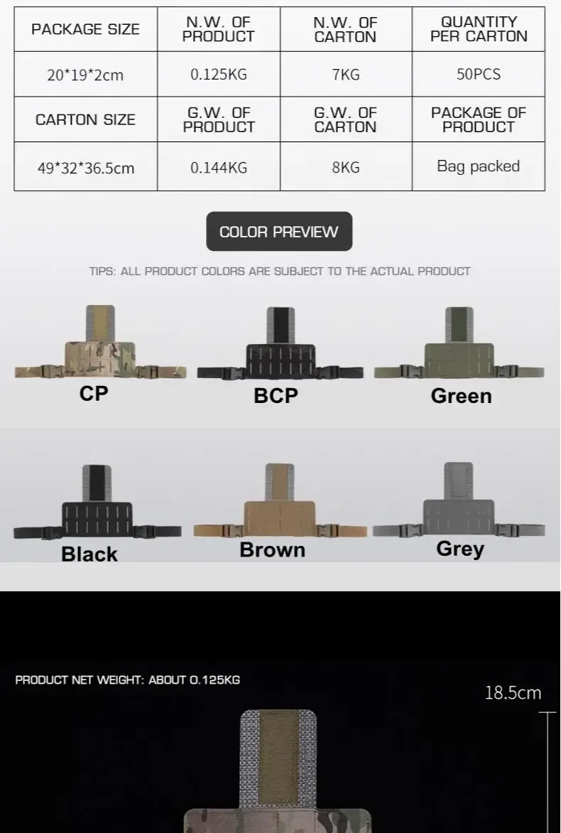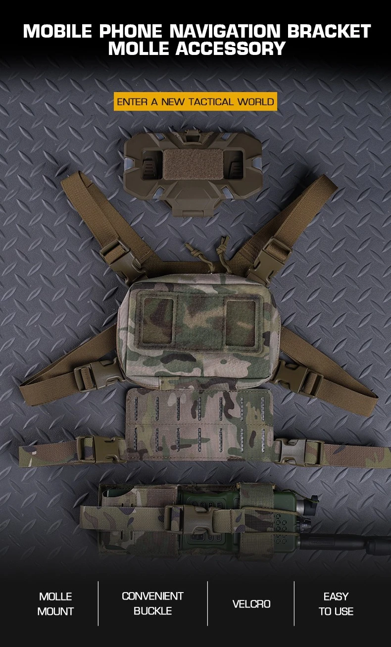 Característica del producto:1. Diseño exclusivo, este es un accesorio especialmente diseñado para el marco de fijación de la placa de navegación, se puede transportar equipo adicional.2. Monte MOLLE, los usuarios llevan varios accesorios tácticos MOLLE según sea necesario Tenga en cuenta: 1. Debido a la medición manual, habrá un error de 1-3 cm. 2. El color puede ser más claro o más oscuro debido a las diferentes pantallas de PC. 3.Tal vez haya una ligera diferencia en los detalles y el patrón.