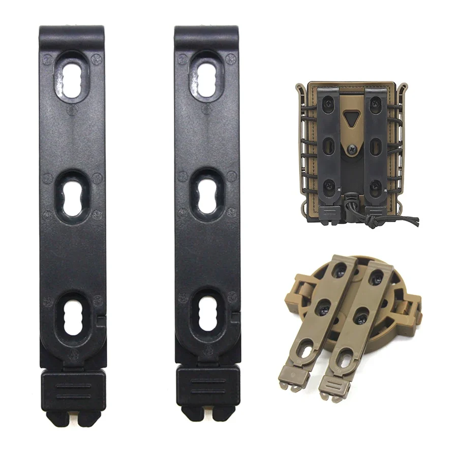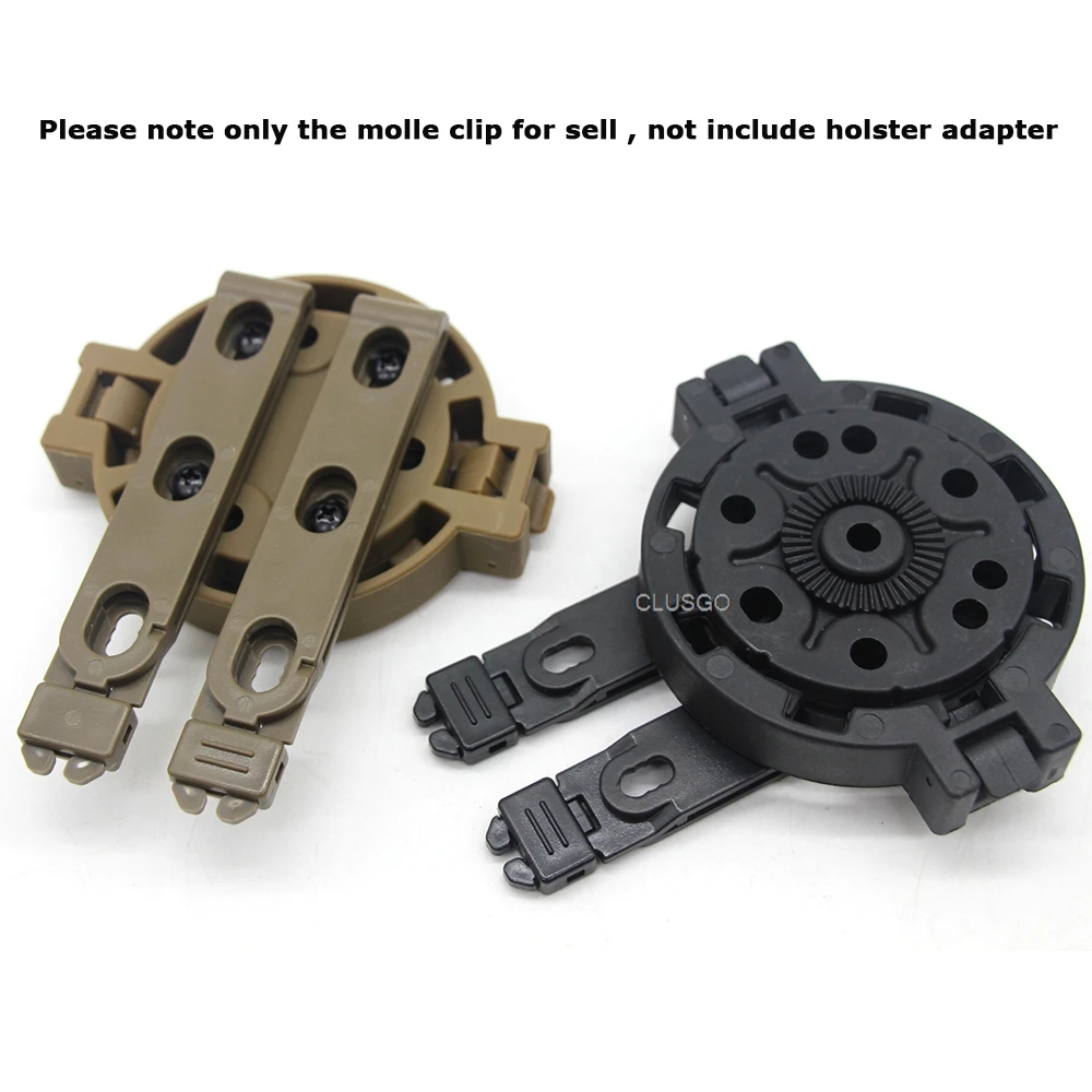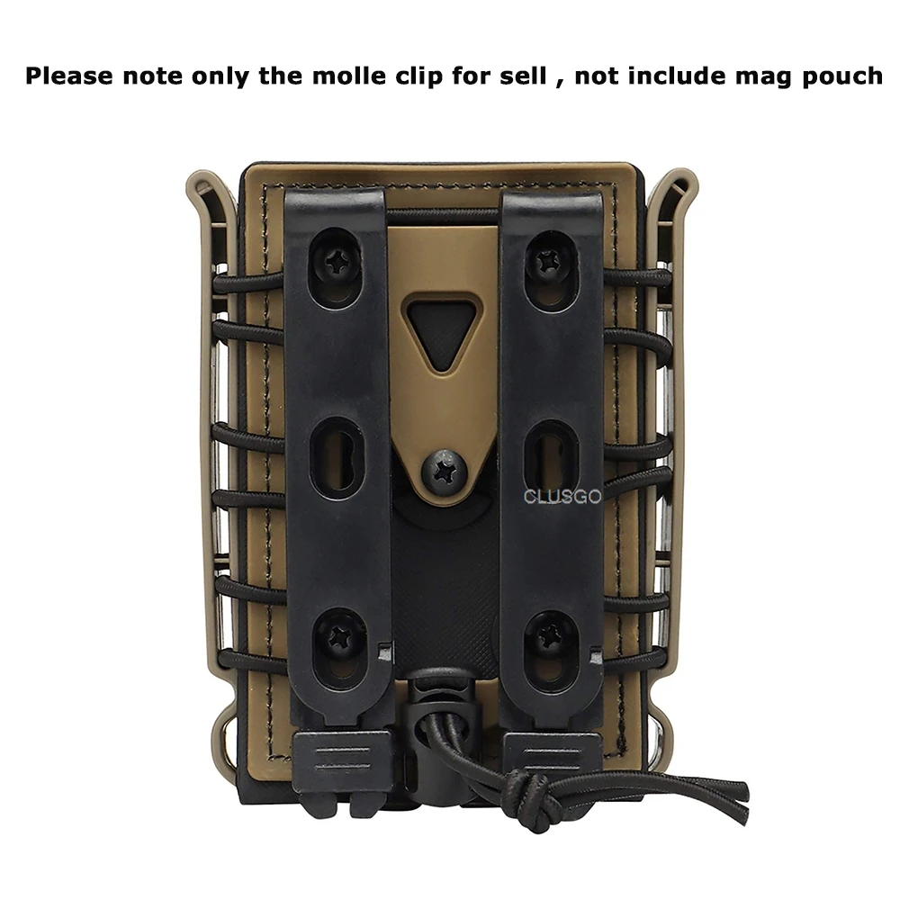 El clip Molle fija de forma segura sus componentes a su equipo y se bloquea firmemente deslizando el collar ̋Locking ̋ en su lugar.Un ̋Click audible señala el cierre positivo.El mecanismo de bloqueo Molle Clip evita cualquier posibilidad de una liberación involuntaria del collar.Sin embargo, el diseño del clip Molle permite la manipulación ̋tool libre para facilitar el ajuste de su equipo en el campo.Cada clip viene con 2 tornillos para montaje.