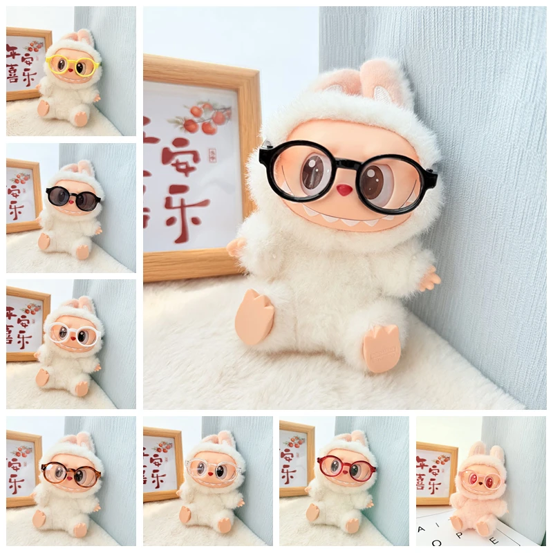 Accesorios de gafas para muñecas, bonitos para muñecas de 17cm, decoración de juguetes de peluche, círculo, gafas transparentes, muñecos de peluche para regalos