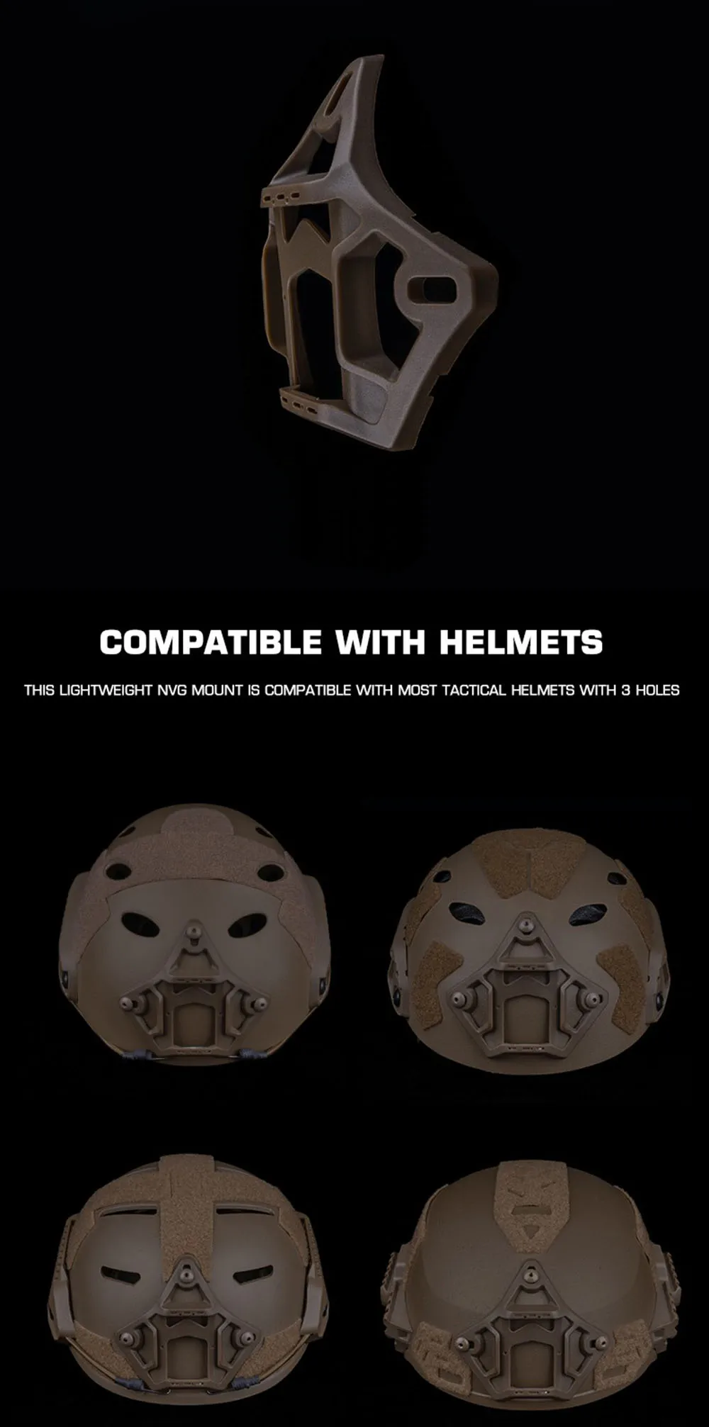 Accesorios de montaje NVG ligeros Soporte táctico para casco rápido (3 orificios) para dispositivo de visión nocturna