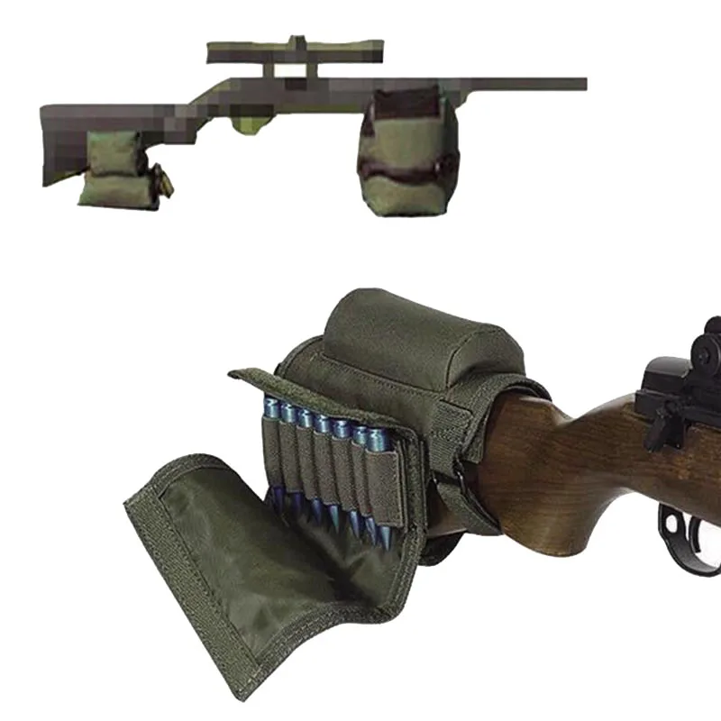 Accesorios de pistola de rifle de francotirador de caza de tiro del ejército, bolsa de soporte sin llenar delantera y trasera + reposacabezas táctico con soporte para revistas