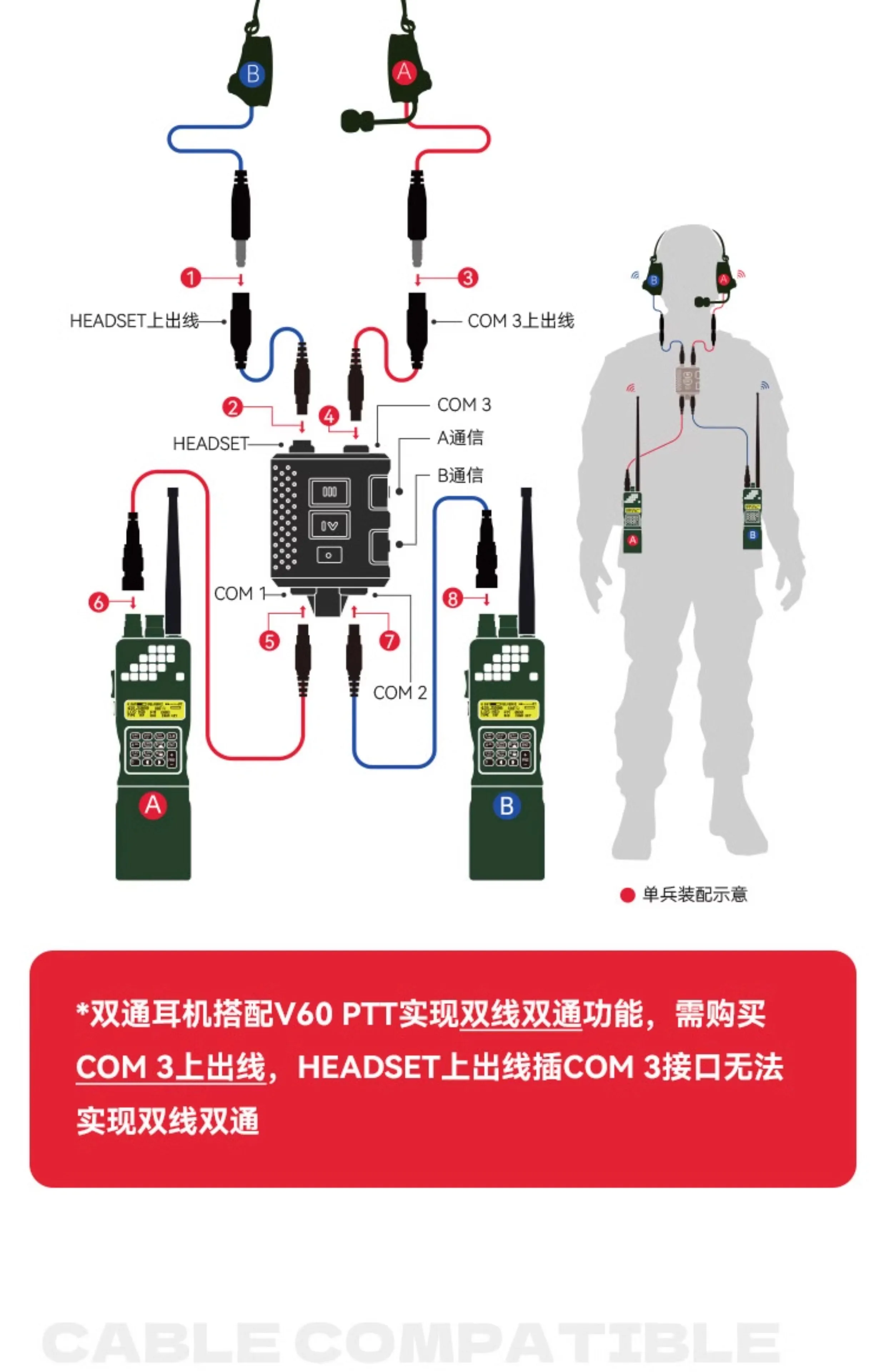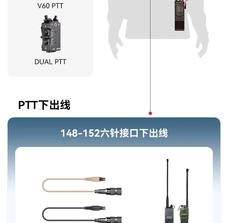 Accesorios PTT salida superior salida inferior V20 V60 DUAL Walkie Talkie KN6 conexión Cable de conversión de datos