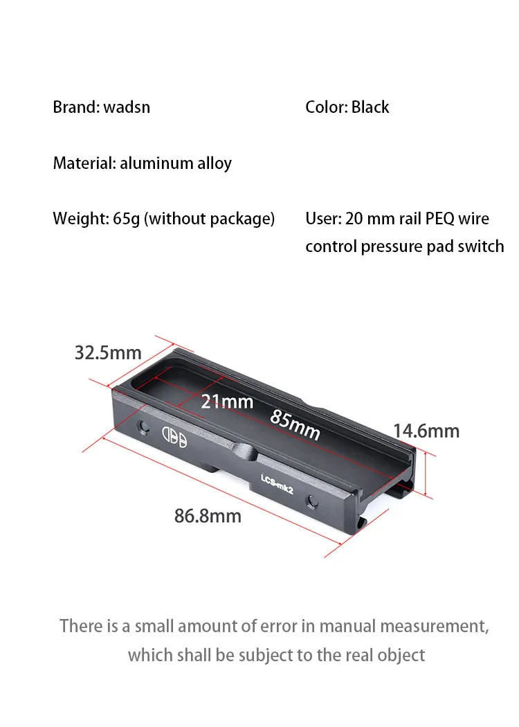 Accesorios de ranura de montaje de interruptor remoto táctico, M-LOK de riel de 20mm, Keymod, Panel de bolsillo CNC, Airsoft, PEQ, DBAL, NGAL, Base láser