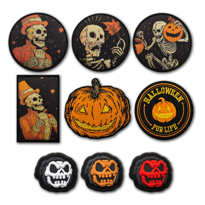 Accesorios de ropa bordados populares de Halloween fantasma de muñeca de terror, pegatina de tela, parches de insignia de gancho y bucle