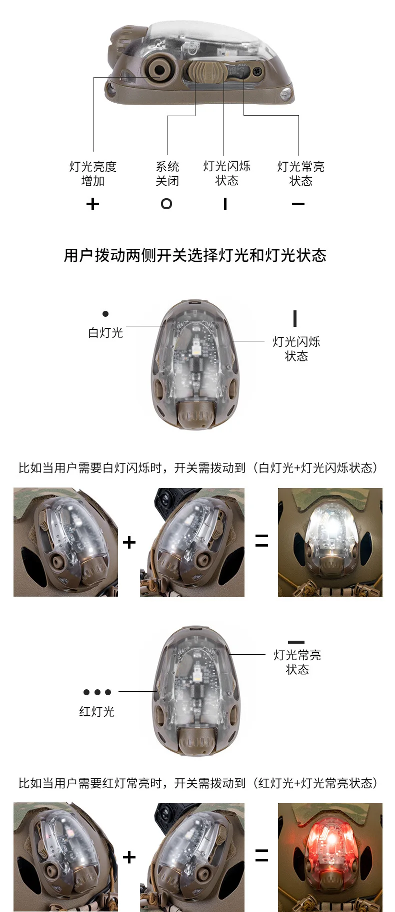 Accesorios tácticos de caza al aire libre, cascos, luces de señal, múltiples opciones de iluminación