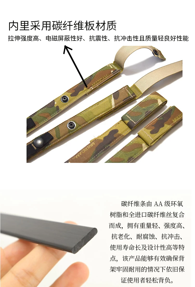 Material: cinta Multicam importada, hebilla UTX importada dentro de la placa de fibra de carbono