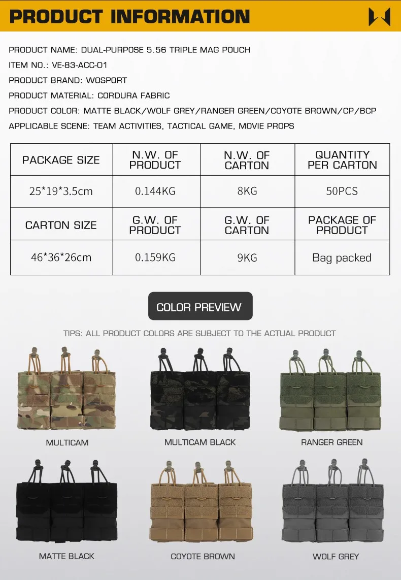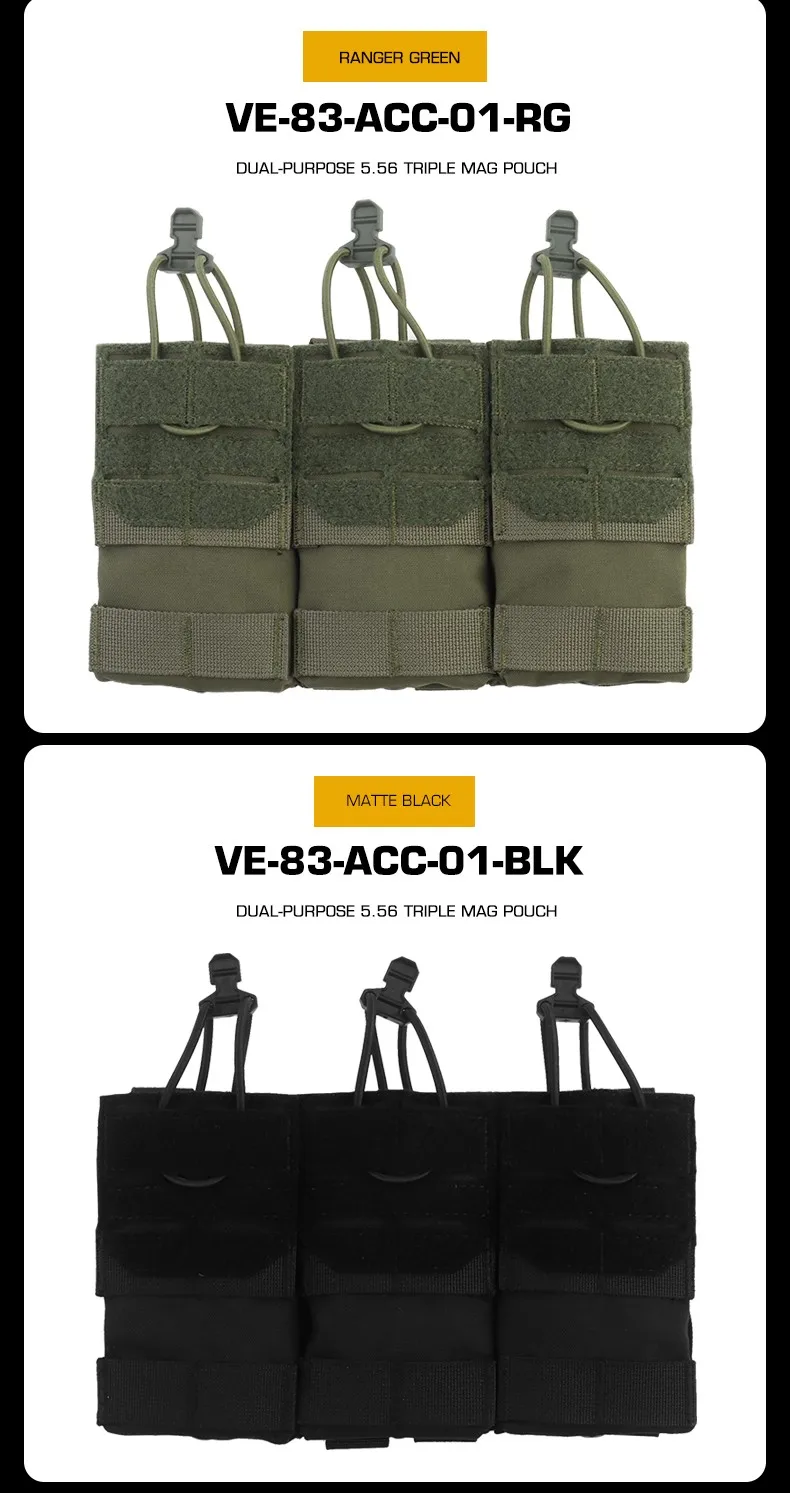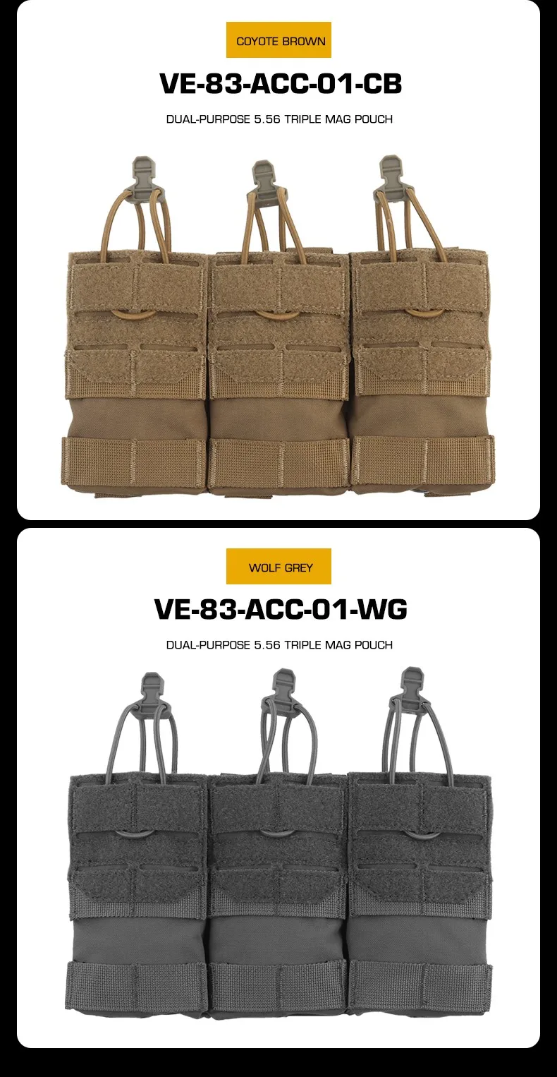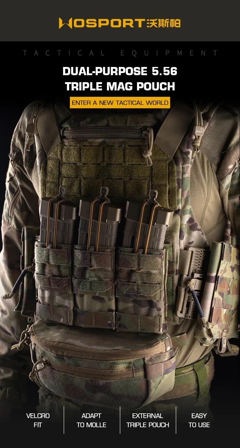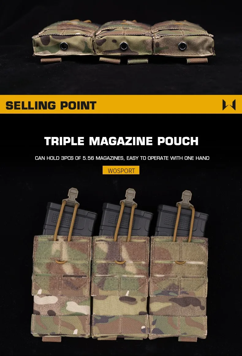 Accesorios tácticos de doble propósito Molle 5.56 Triple Mag Pouch Airsoft