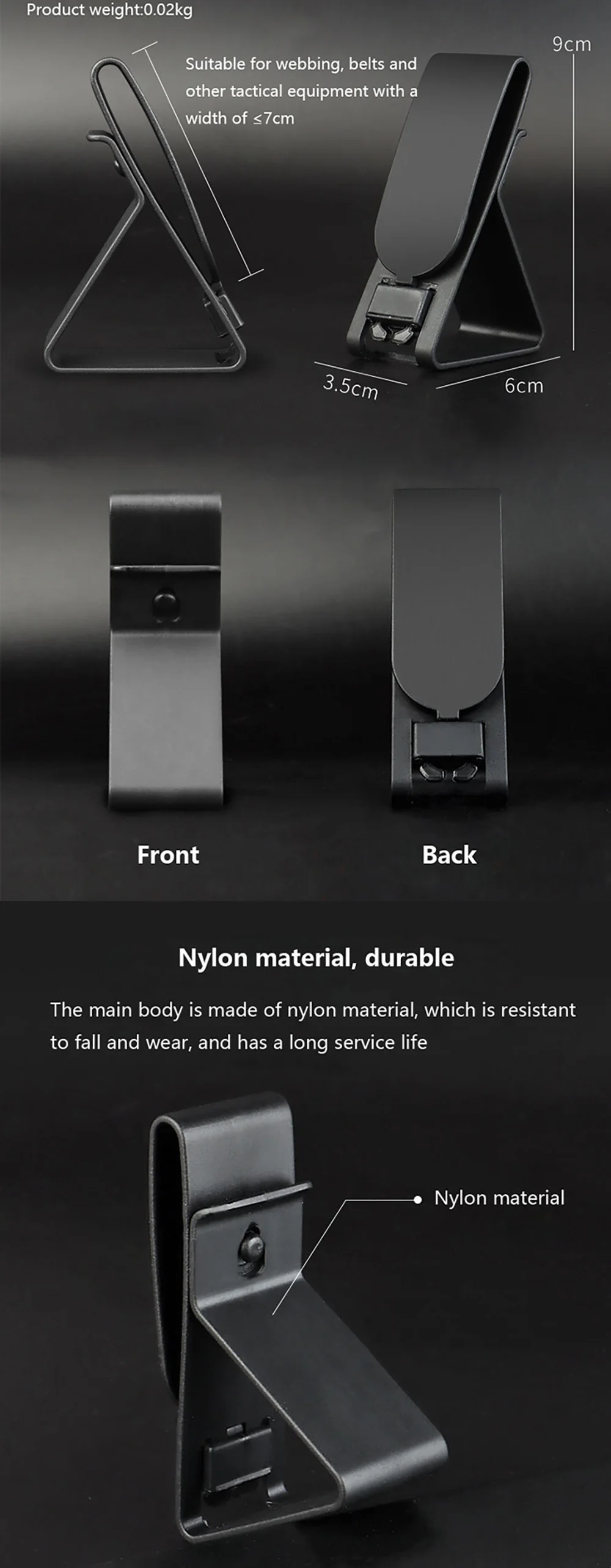 ➤ Se puede instalar en un chaleco táctico, cinturón, mochila u otro equipo.