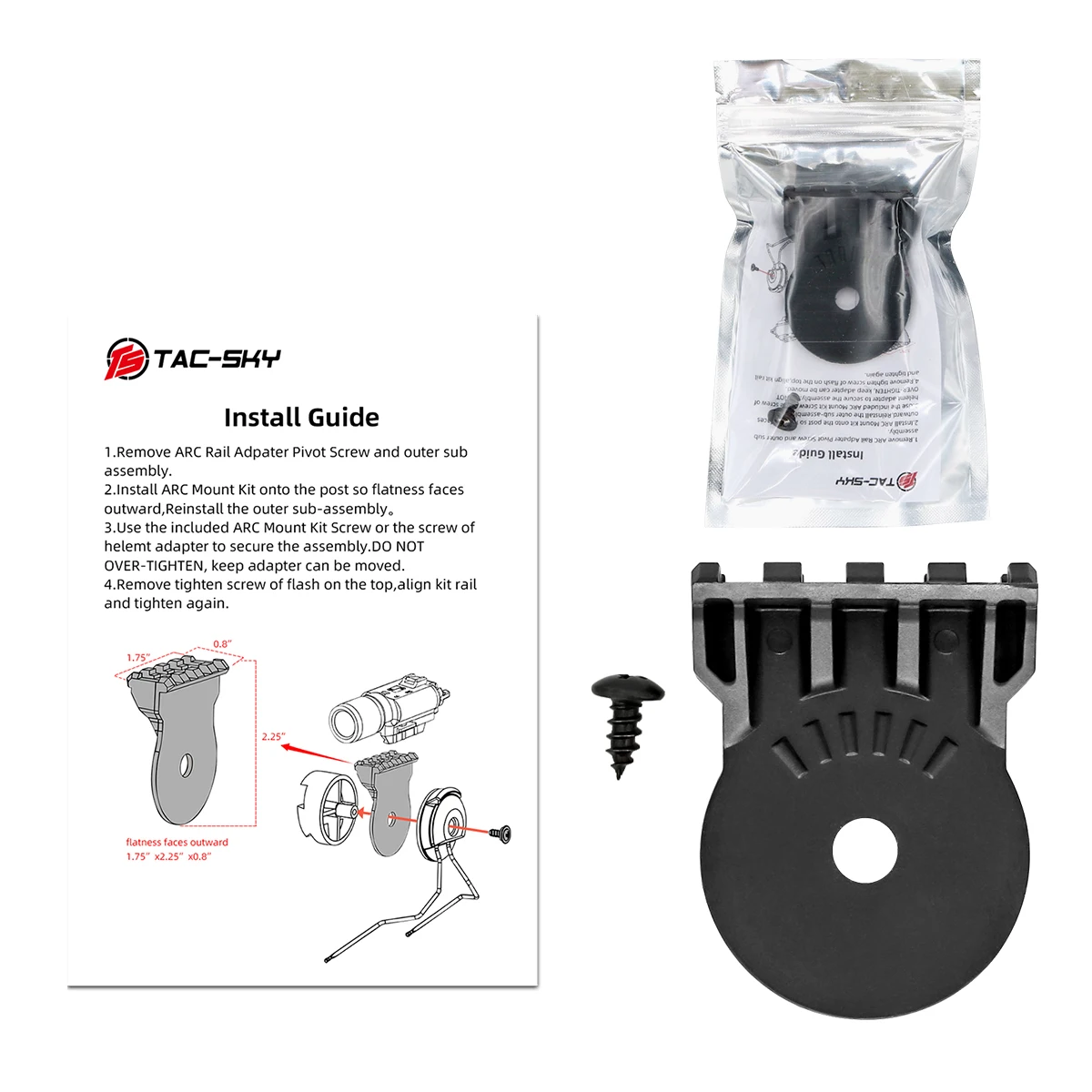 El accesorio de plataforma del kit de montaje ARC de la linterna táctica le permite instalar fácilmente la linterna táctica en el casco, facilitando su uso en la oscuridad.