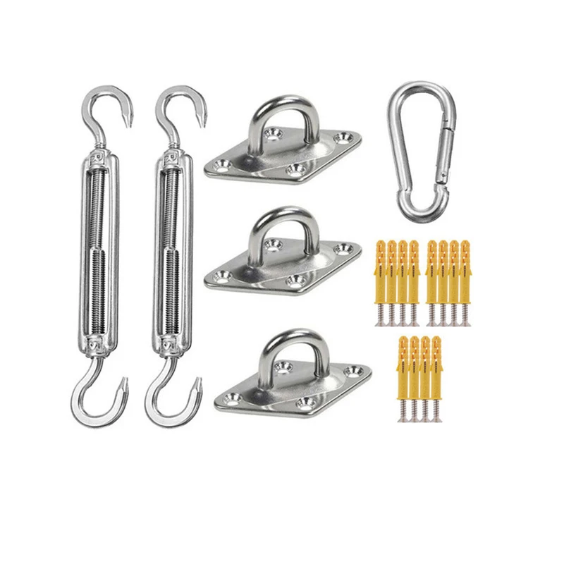 Accesorios para toldo 24 unids/set 304 Kit de herrajes de acero inoxidable tensor ojales mosquetón Clip gancho tornillo plata