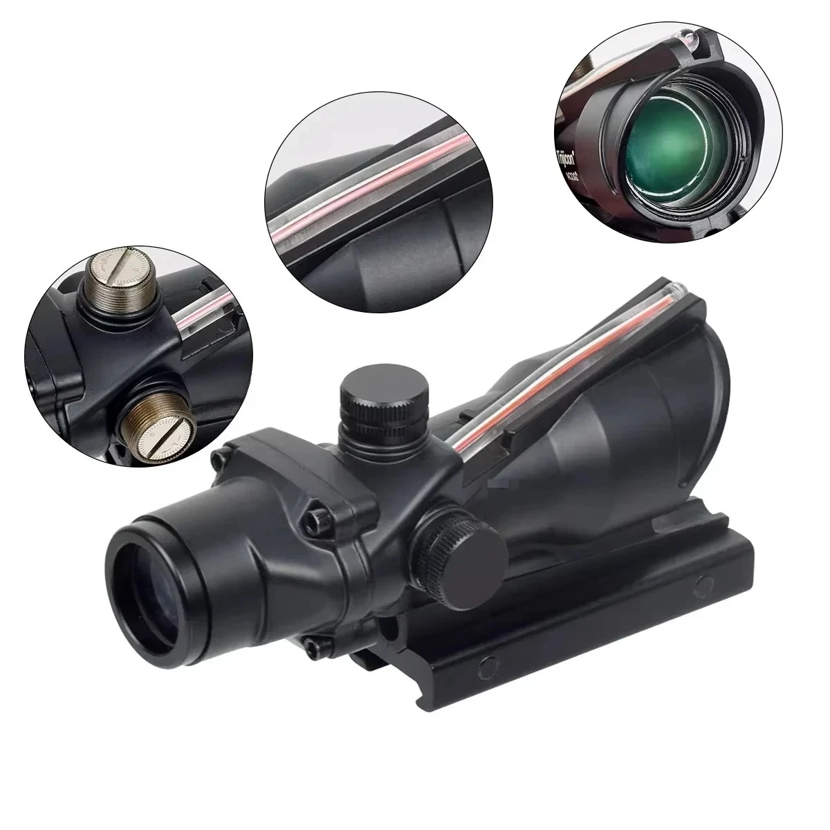 100% nuevo Aumento: 4x Apertura del objetivo: 32 mm Distancia de salida de la pupila: 76-89 mm ver: 36,6 a 100 yardas Hasta 600 metros 5,56/.223 Retícula BDC iluminada en verde (solo luz diurna) Alimentado por una fuente de fibra, que proporciona un ambiente más brillante y una iluminación de retícula durante el día. Viento y elevación ajustables Lente frontal multicapa. Sin paralelo. Se instala fácilmente en cualquier riel de 20 mm. Alivio ocular: 1,5"