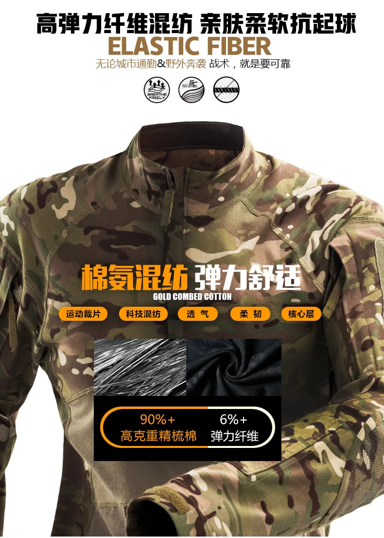 Composición de la tela: 95% algodón peinado 5% fibra elástica (mezcla: 24% fibra permeable a la humedad 8% fibra de poliéster hombro, manga y otras piezas clave)